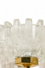 2 Hans-Agne Jakobsson Swedish Mid-Century Brass and Frosted Geometric Cut Glass Chandeliers