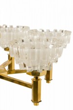 Style: Mid-Century Materials & Techniques: Brass, glass, metal Category: Lighting Good; Minor losses