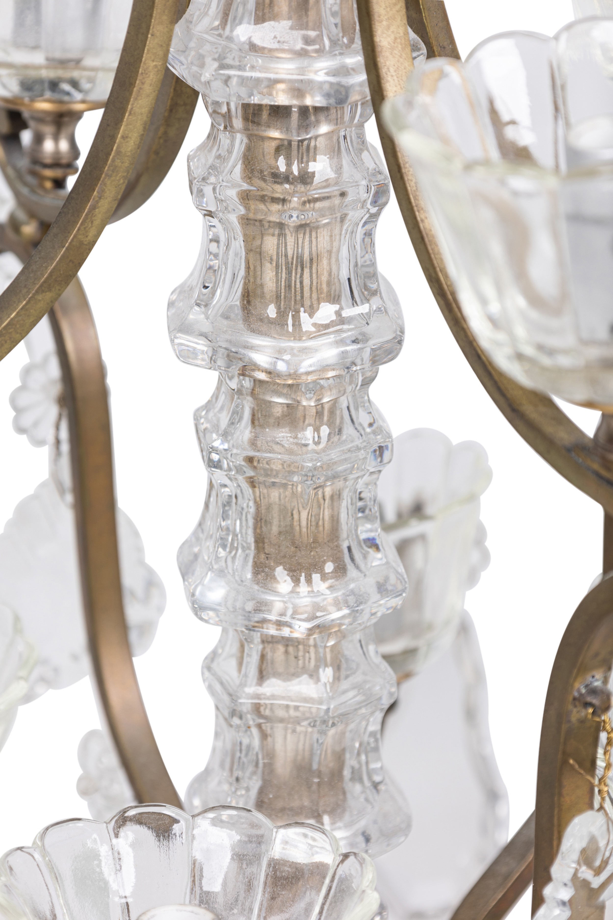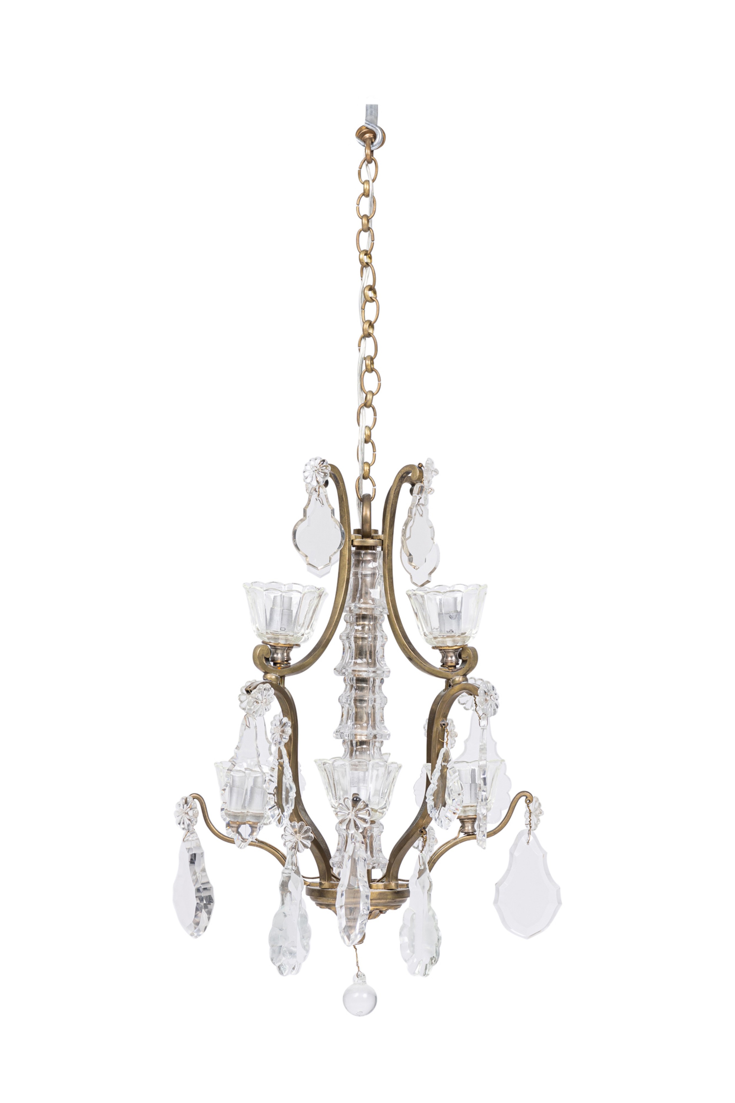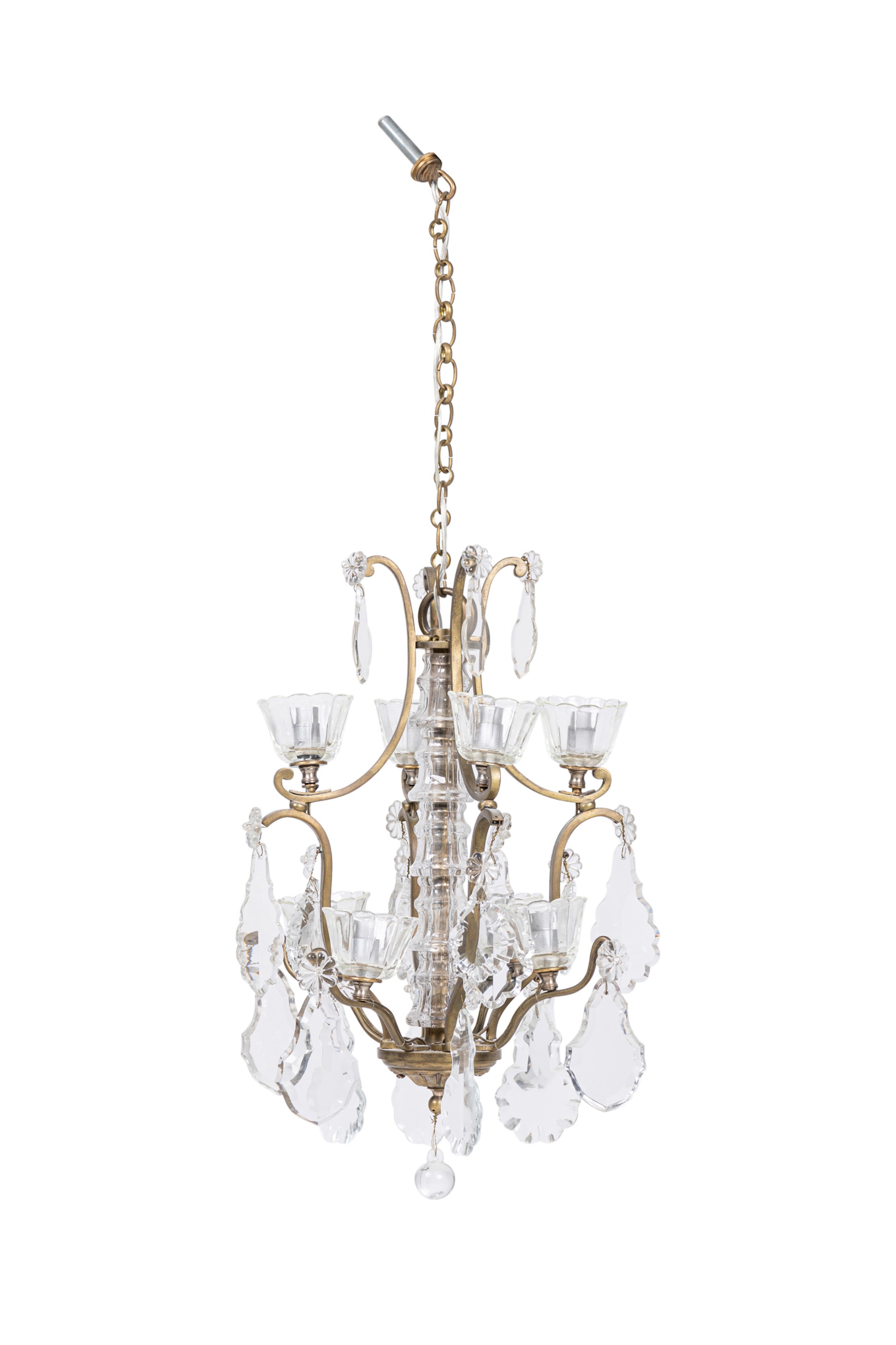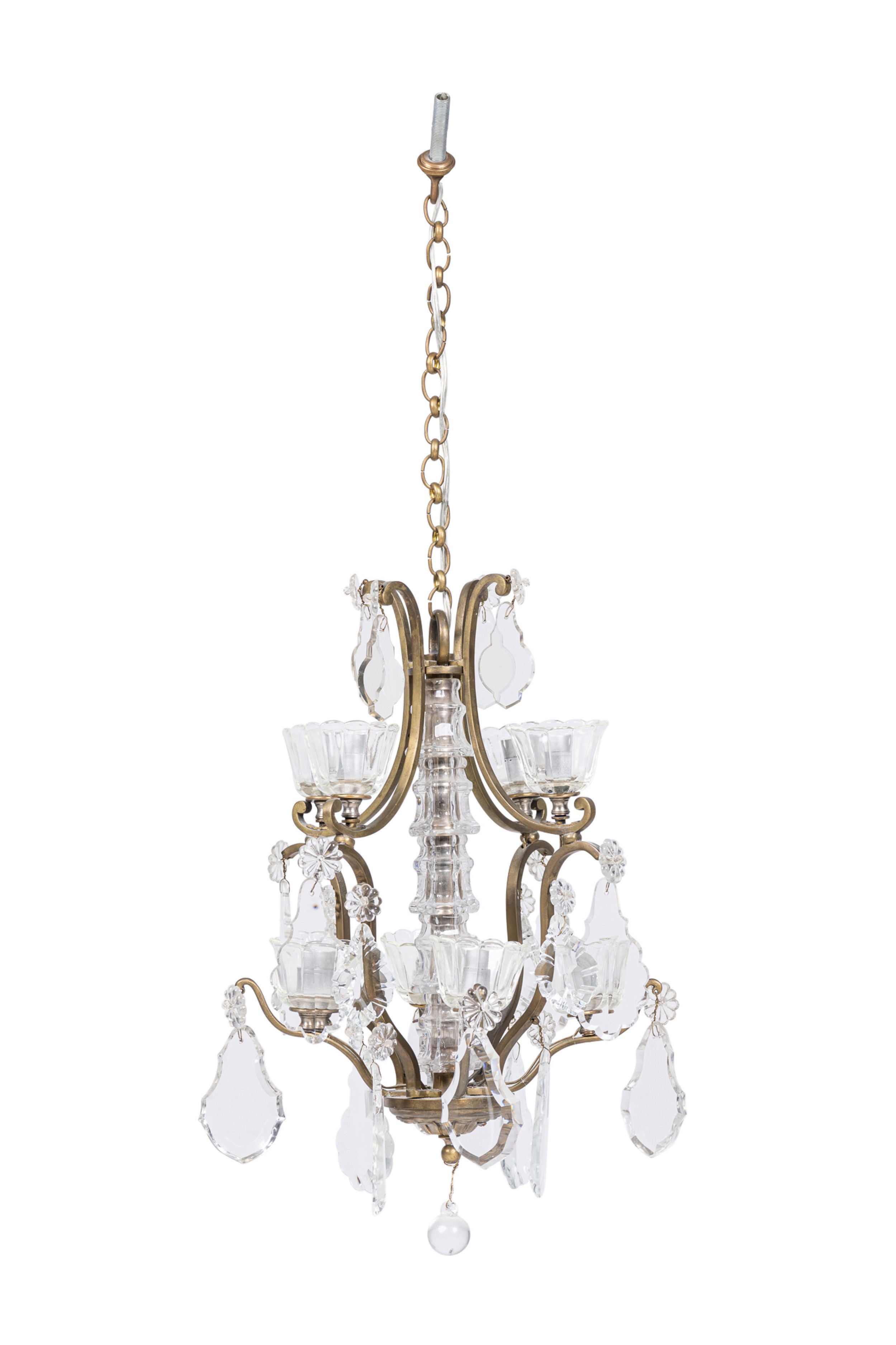 2 Louis XV style (20th Century) small bronze dore and crystal chandelier with 8 glass cups (PRICED EACH).