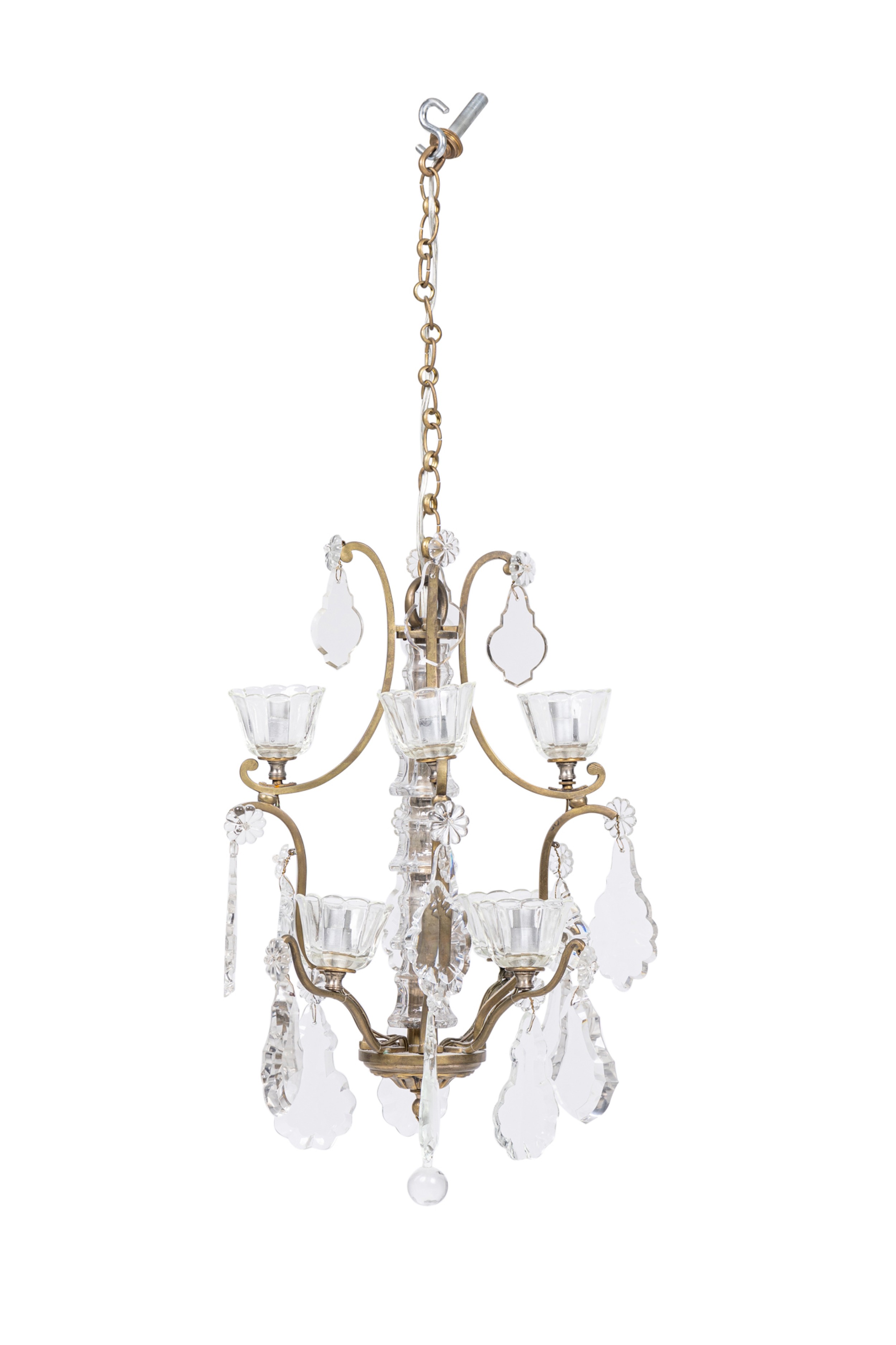 2 Louis XV style (20th Century) small bronze dore and crystal chandelier with 8 glass cups (PRICED EACH)