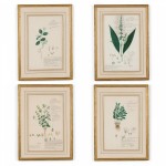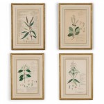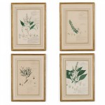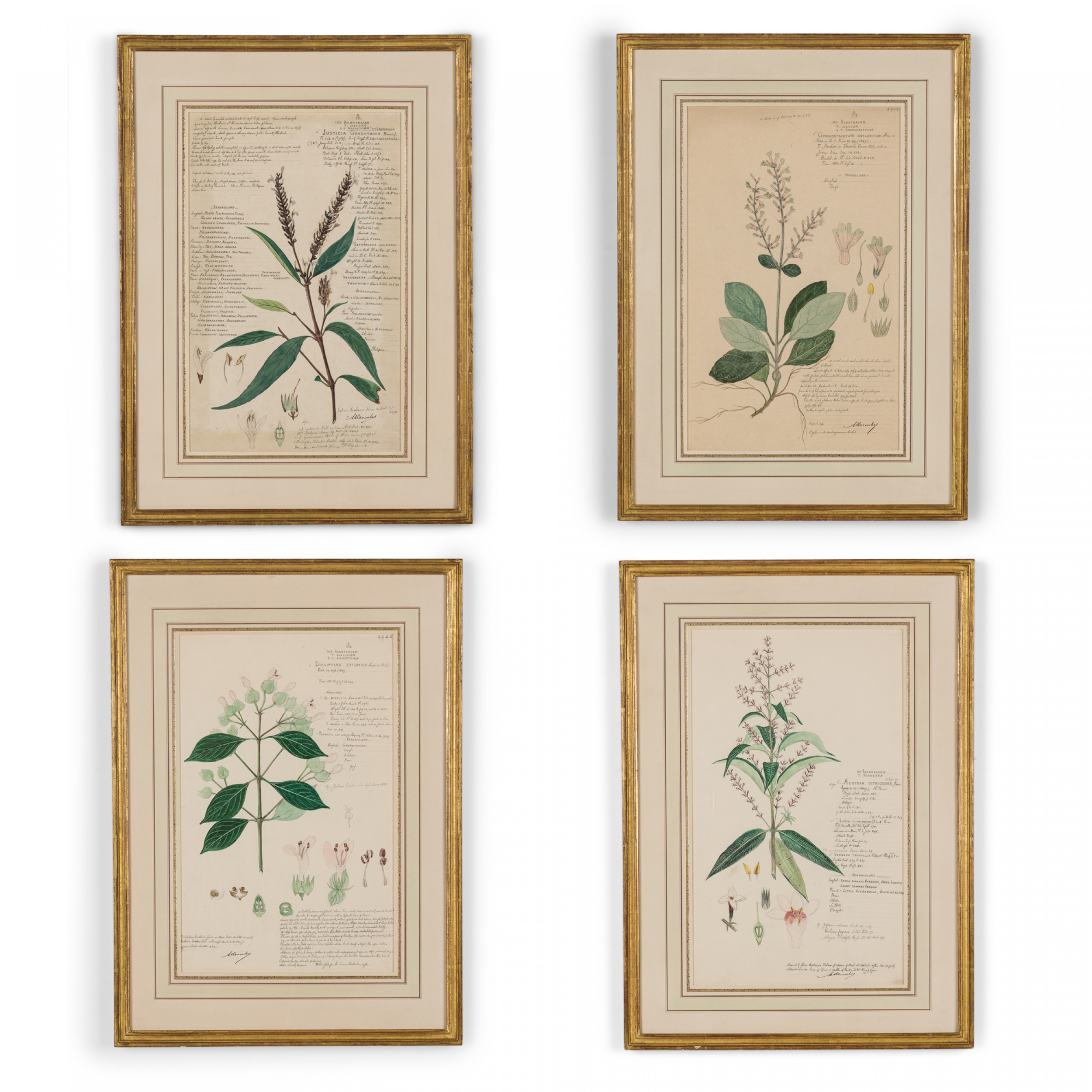49 American Victorian (19th Century) watercolor, ink, and pencil botanical drawings depicting various plants and flowers in green tones against a beige background, with pencil notes, matted in beveled parcel gilt painted wooden frames. (PRICED EACH)(For individual listings, please see items: 063654-063700).