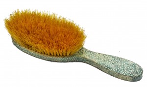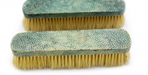 5-Piece Art Deco green shagreen brush set (4 brushes, 1 hand mirror) (PRICED AS SET).
