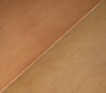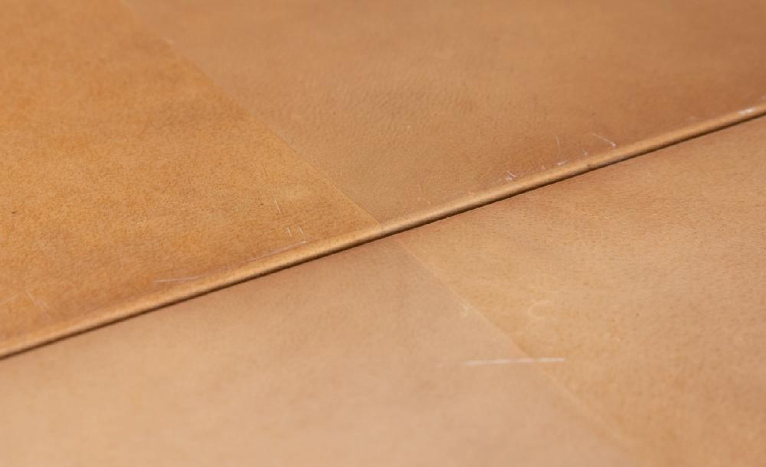 Style: Mid-Century Materials & Techniques: Leather, metal Category: Tables Condition: Leaves are a slightly different color from table (some sun exposure).