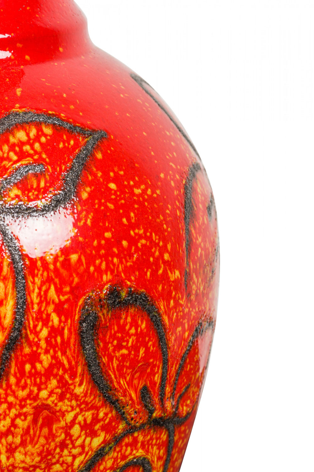 West German Mid-Century ceramic vase with a hand painted black floral pattern against a bright red glazed ground. (mark on bottom, BAY W. GERMANY 66-40).