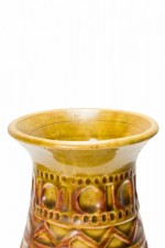Bay Keramik was a renowned pottery manufacturer based in Ransbach-Baumbach, Germany. The company was founded in 1933 by Eduard Bay and his brother Friedrich Bay. Initially, Bay Keramik produced functional ceramics such as vases, bowls, and plates. Under the leadership of Eduard Bay, the company quickly gained recognition for its high-quality craftsmanship and innovative designs. Bay Keramik embraced modernist influences and incorporated them into their creations, which set them apart from other pottery manufacturers of the time. In the 1950s and 1960s, Bay Keramik experienced a period of significant growth and success. The company expanded its product range to include decorative ceramics, often characterized by bold colors, abstract patterns, and organic shapes. These distinctive designs appealed to a wide audience and helped establish Bay Keramik as a leading name in the industry. Bay Keramik's success continued into the 1970s, as the company further diversified its offerings. They began producing a range of decorative art pieces, including figurines, wall plaques, and decorative tiles. These creations showcased the versatility and artistic talent of the Bay Keramik team. Throughout its existence, Bay Keramik collaborated with various designers and artists, who contributed to the company's success. Notable names such as Bodo Mans, Heinz Siery, and Gerda Heuckeroth worked closely with Bay Keramik, bringing their unique artistic visions to life through the medium of ceramics. Sadly, Bay Keramik faced financial difficulties in the 1980s, leading to its closure in 1997. However, the legacy of Bay Keramik lives on through the numerous pieces that have survived and continue to be cherished by collectors and enthusiasts around the world. Today, Bay Keramik pieces are highly sought after for their artistic value and historical significance, representing an important chapter in the evolution of ceramic design.