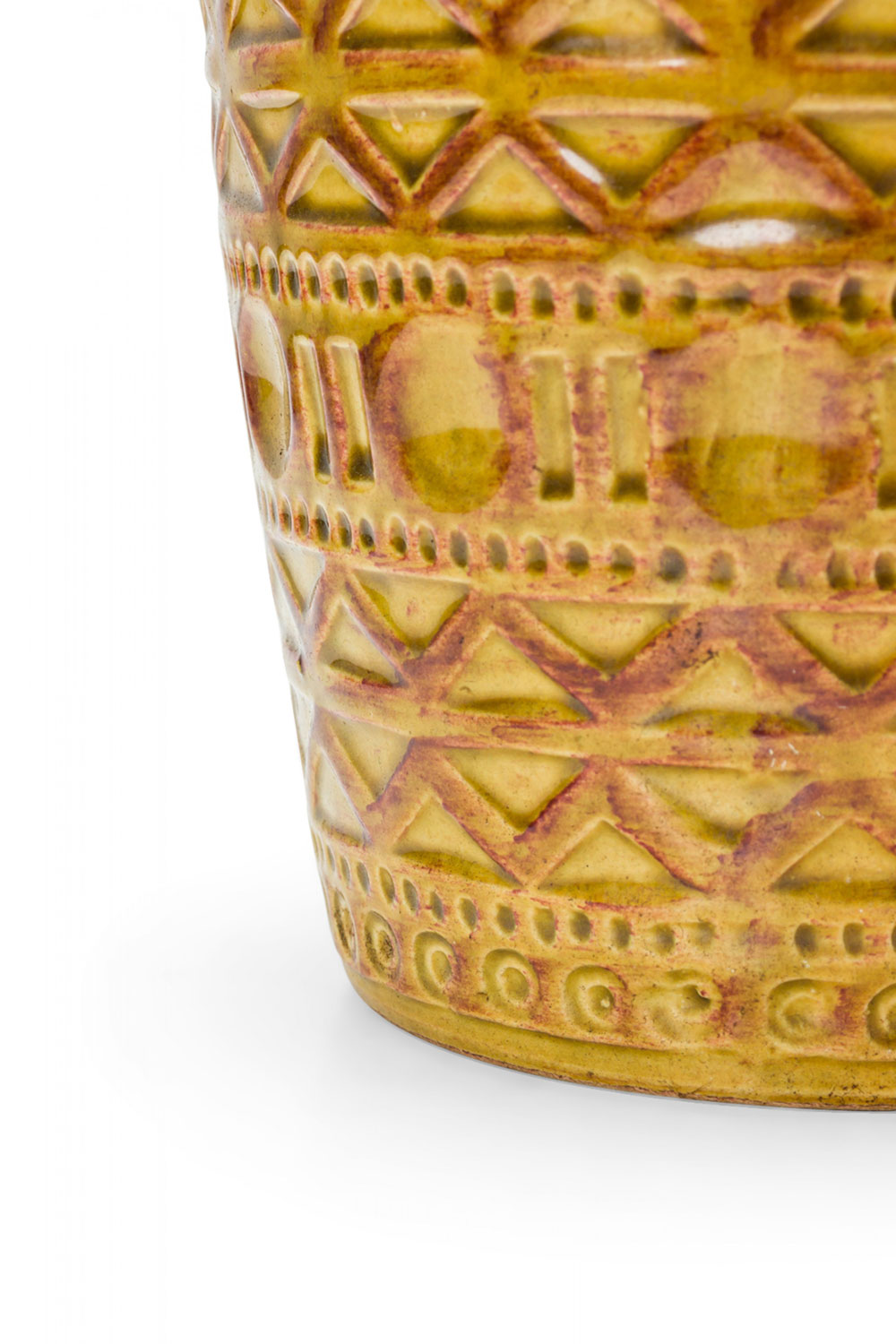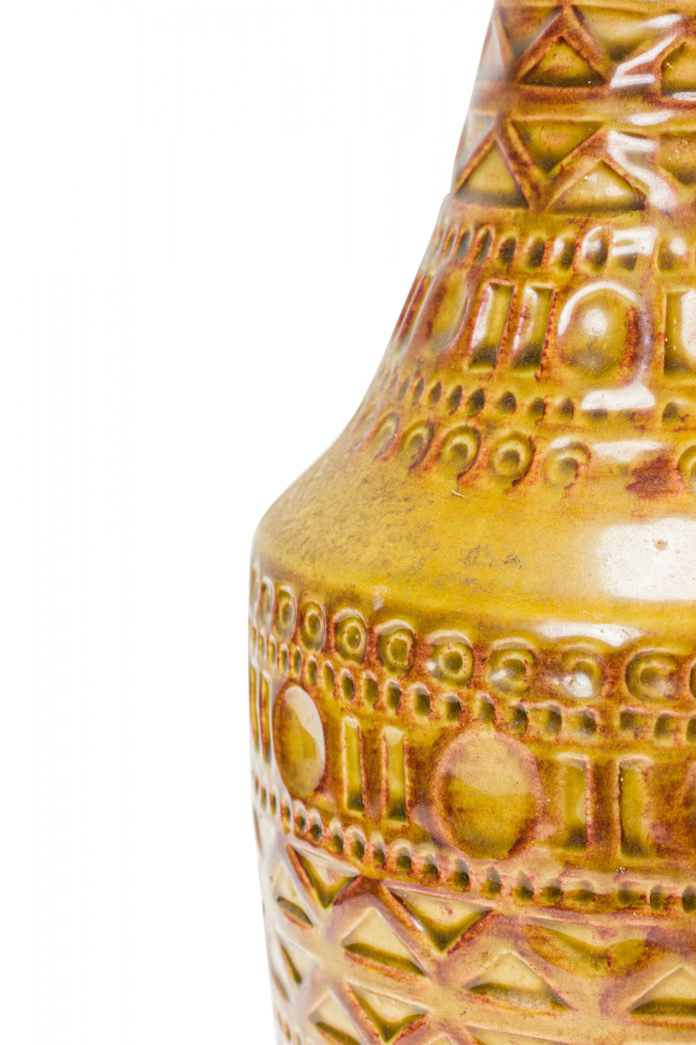 Bay Keramik West German Mid-Century Raised Geometric Banded Design Brown Glazed Ceramic Vase