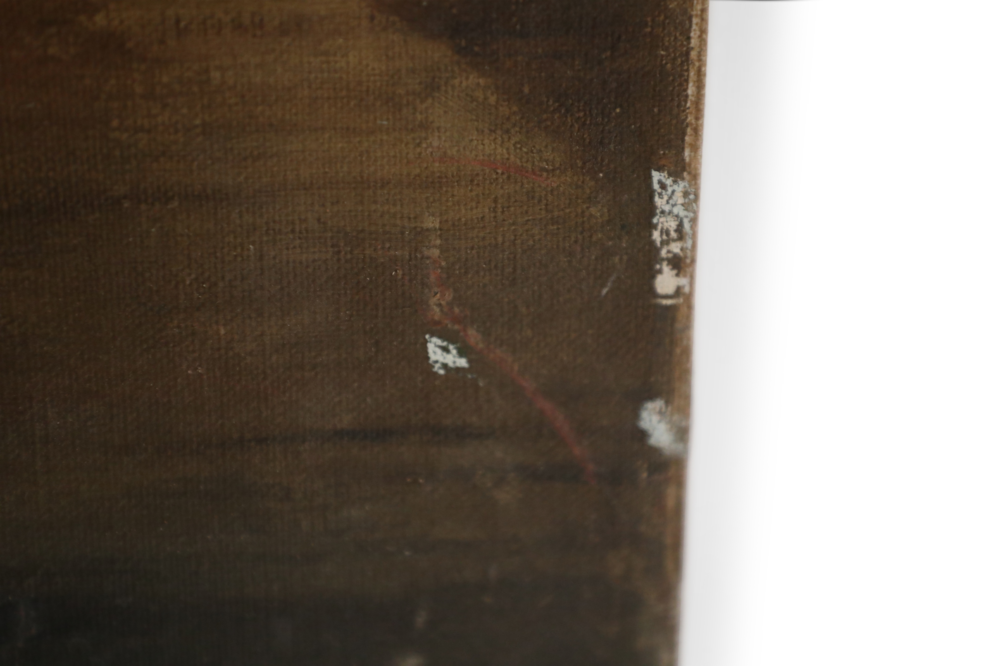 Style: Mid-Century Materials & Techniques: Canvas Category: Cleared Art Condition: Damage and scratches to the perimeter of the painting.