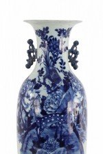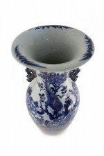 Chinese Blue and White Deer and Floral Motif Porcelain Urn
