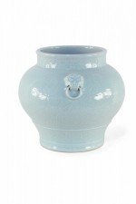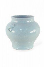Chinese Celadon and Tonal Pattern Porcelain Pot