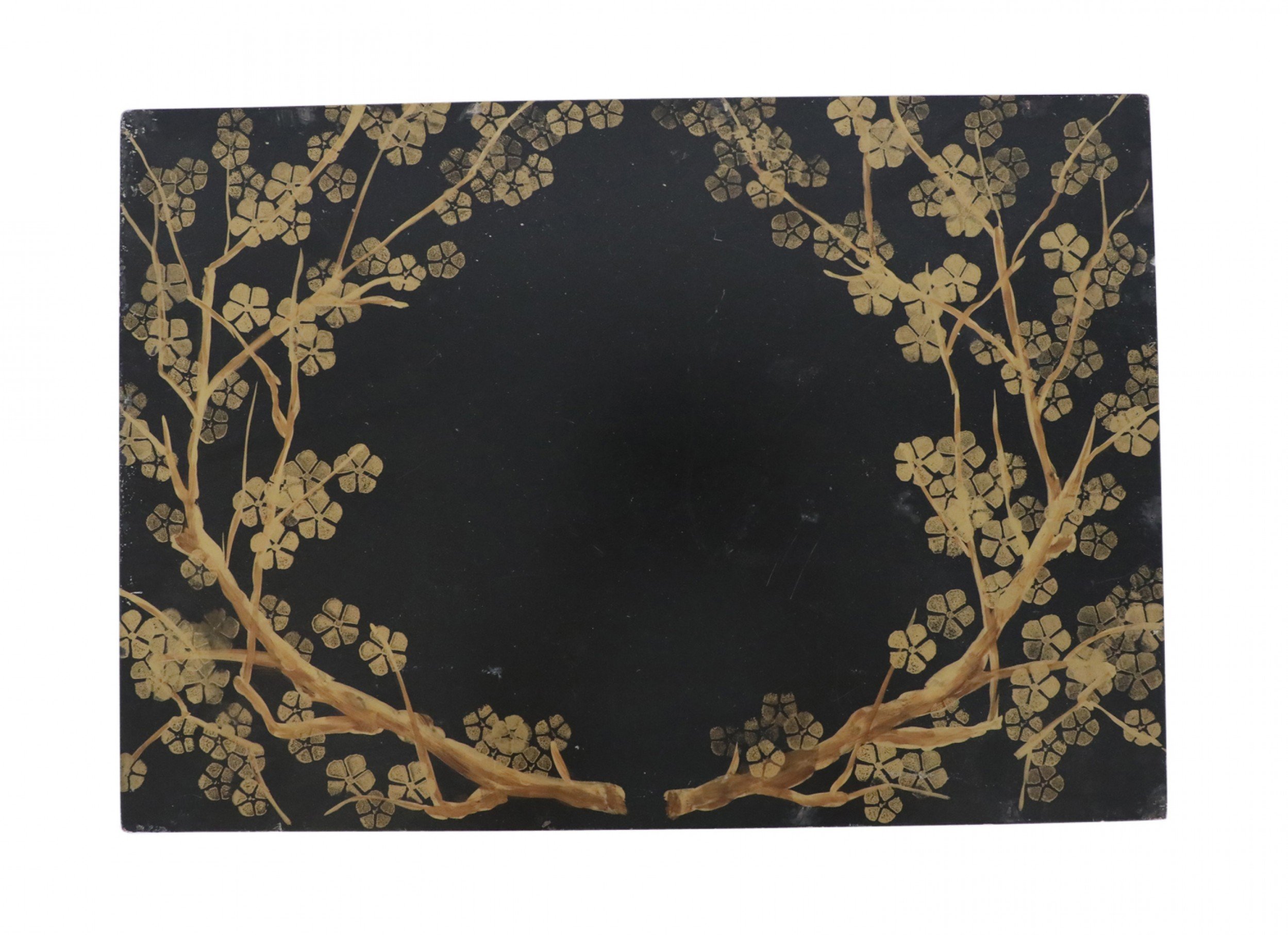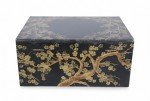 Chinese Gold and Black Painted Cherry Blossom Motif Decorative Box