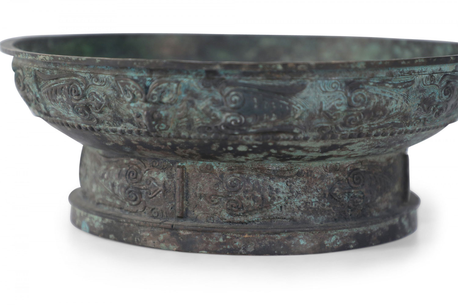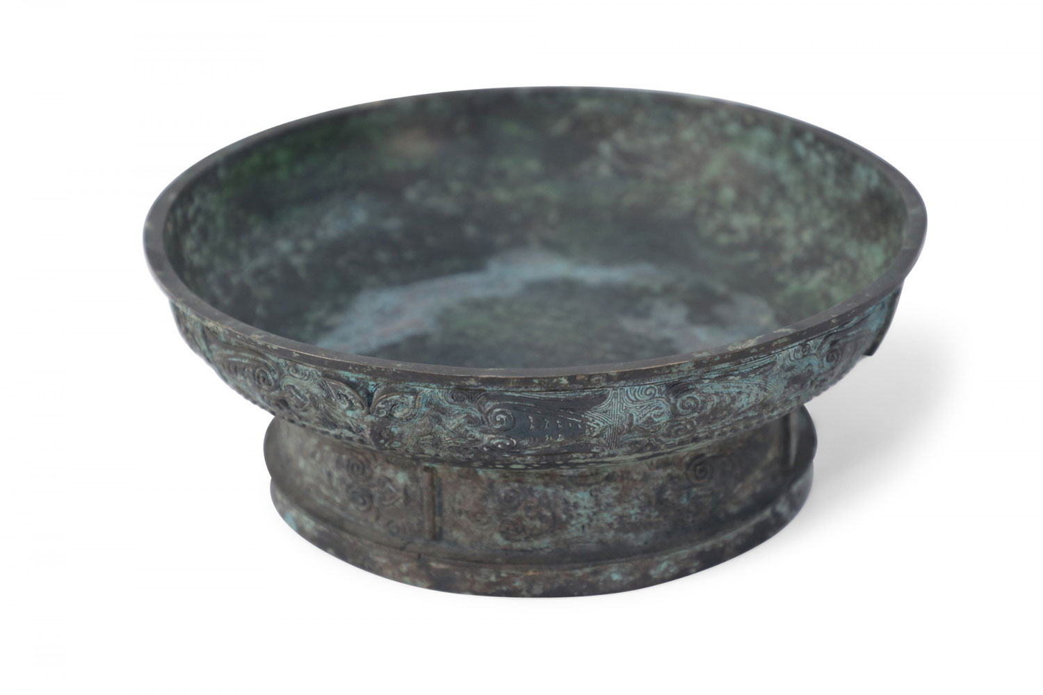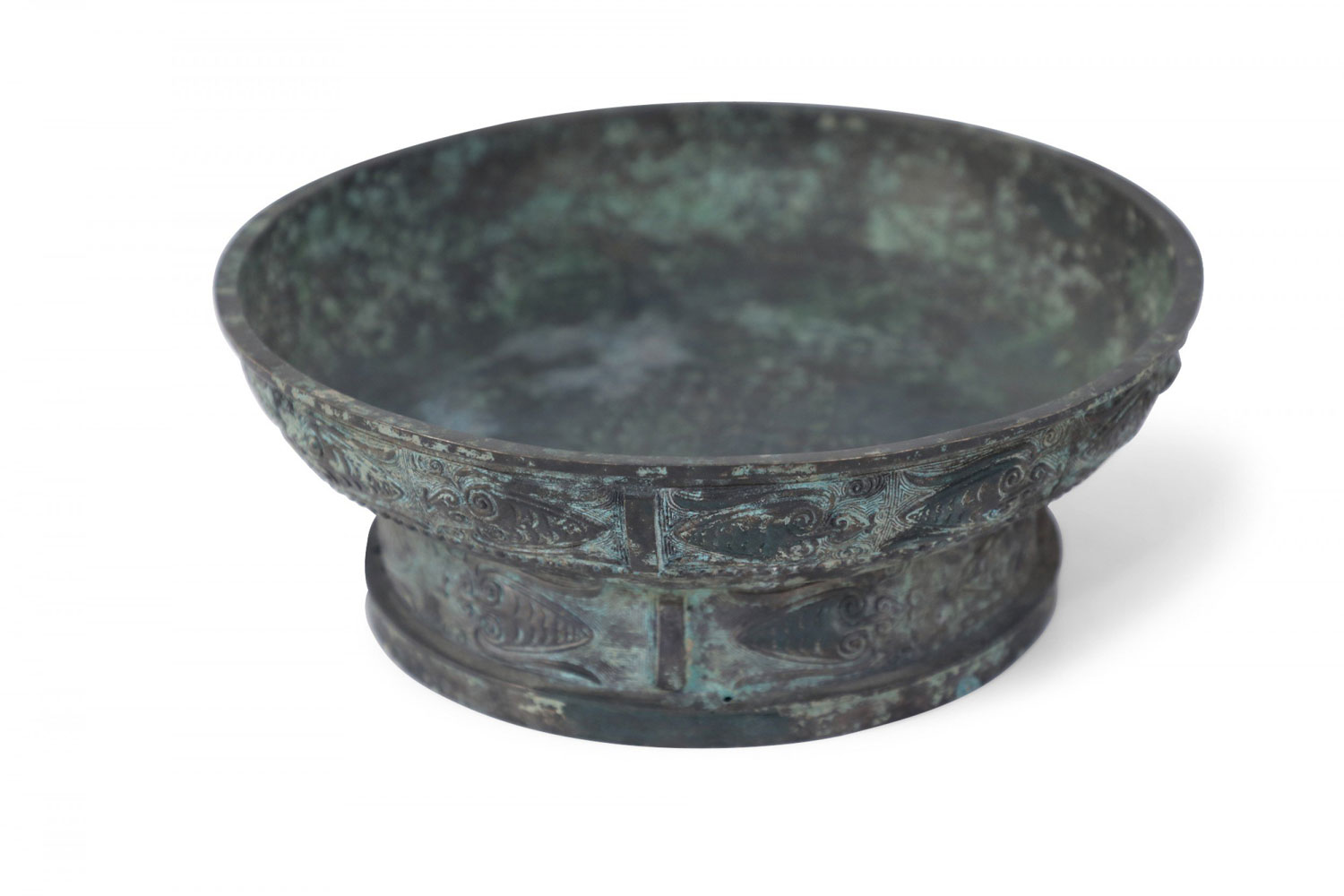 Chinese Han Dynasty-Style Patinated Bronze Shallow Bowl