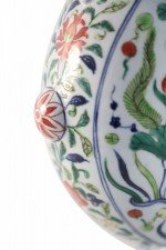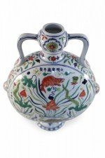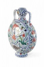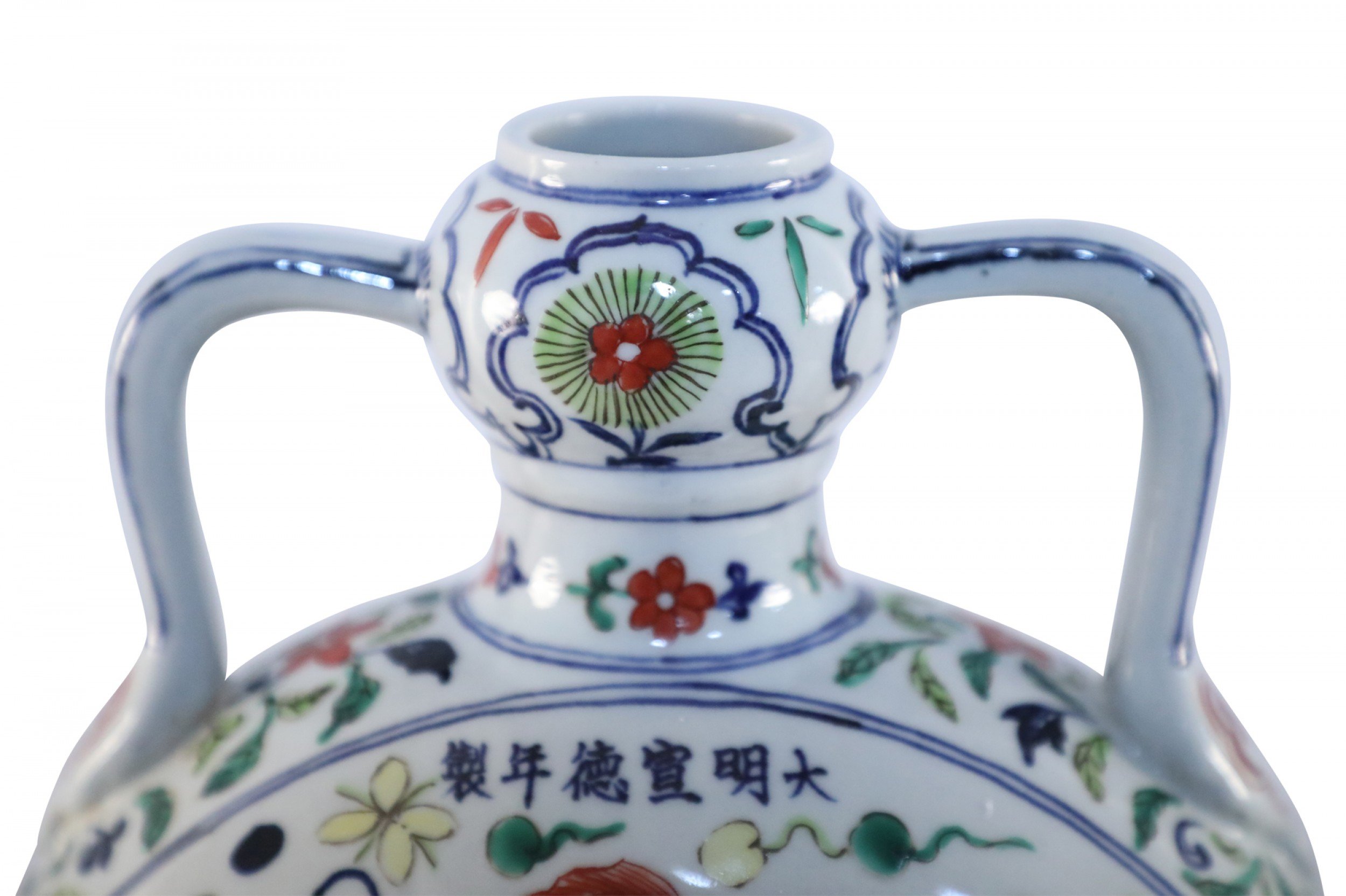 Chinese Koi Fish and Seaweed Porcelain Moon Flask Vase