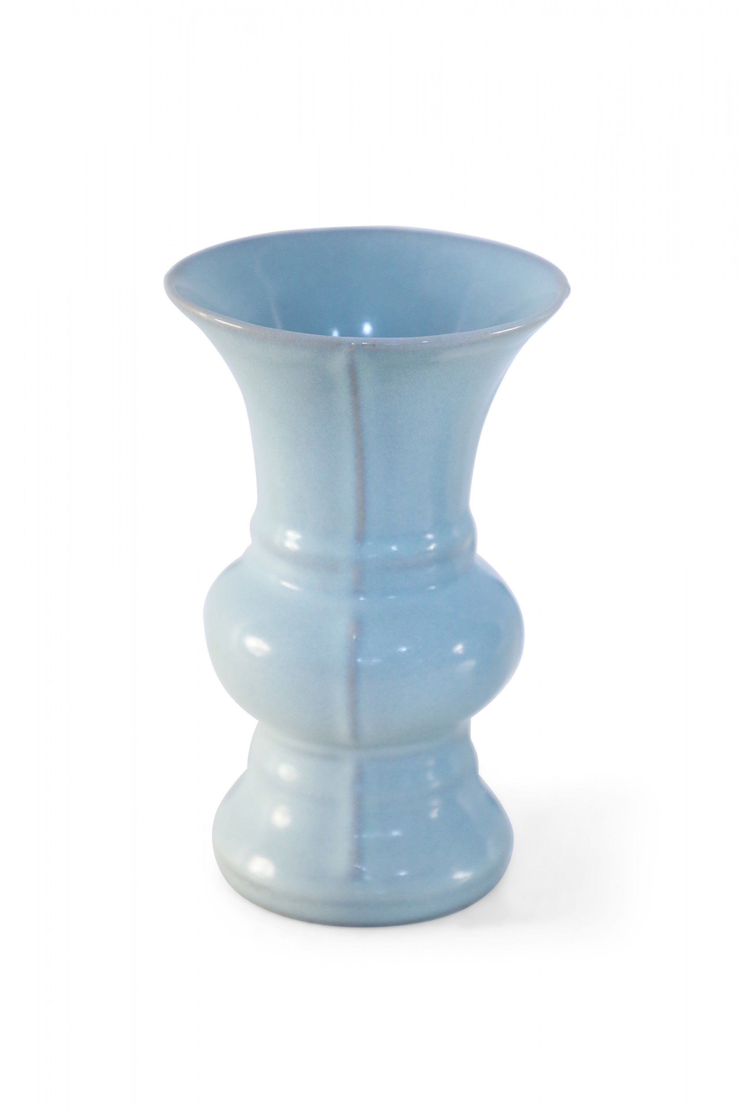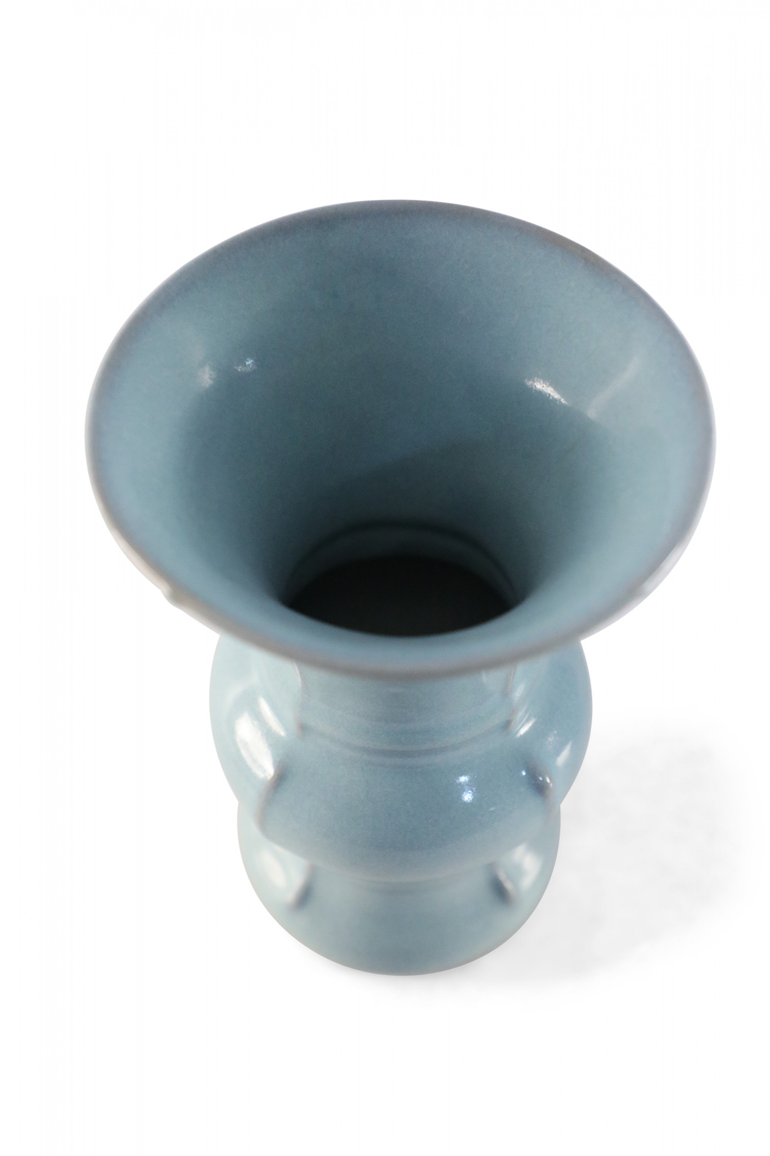 Antique Chinese (Late 19th Century) light blue porcelain vase with a beaker shape and crackled finish.