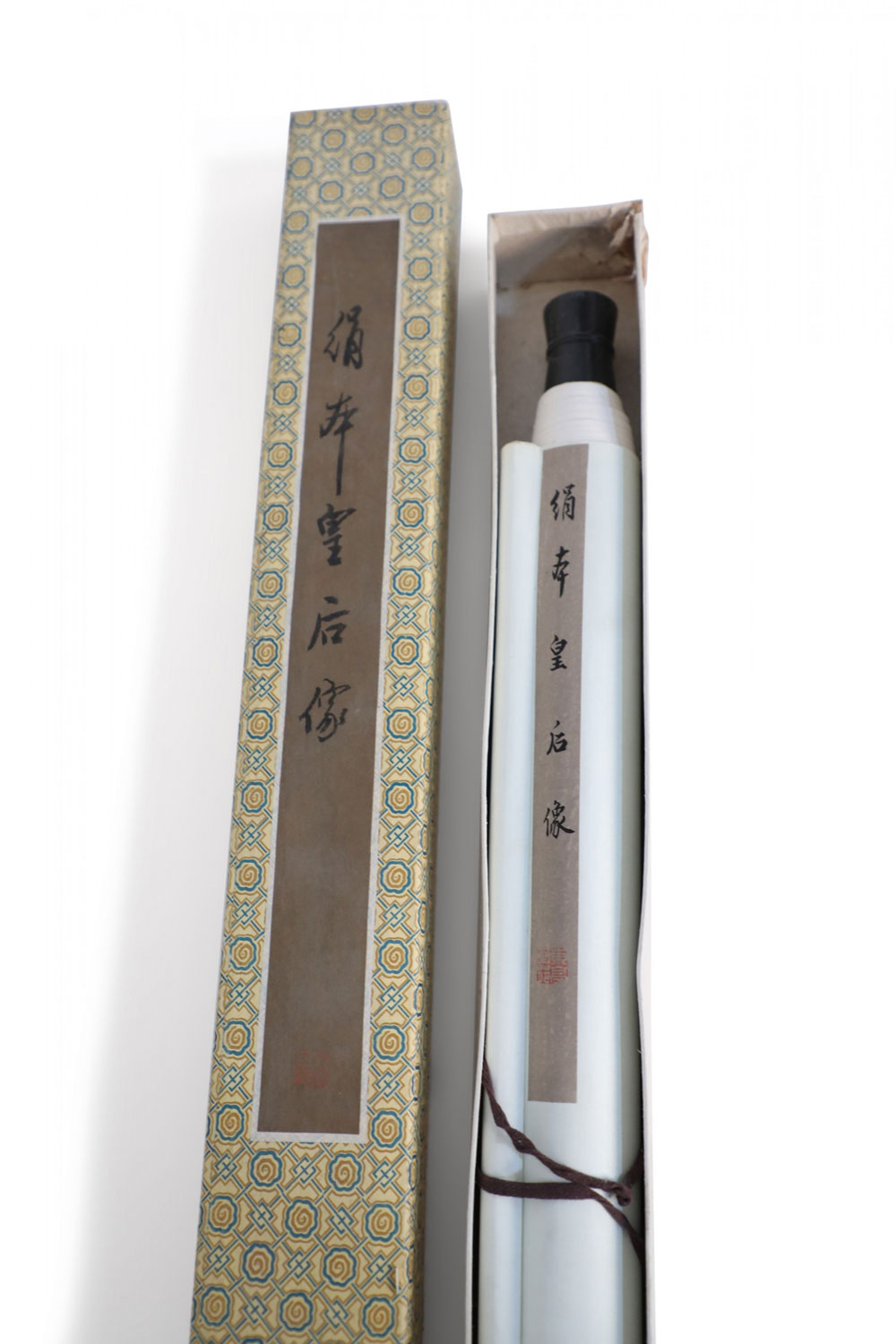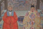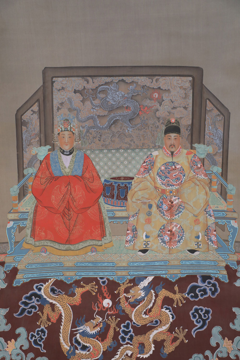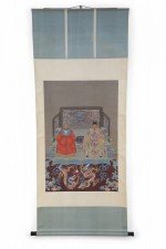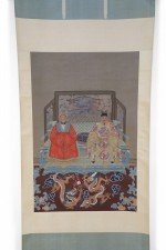 Chinese Ming Dynasty Style Paper and Silk King and Queen Portrait Hanging Scrolls