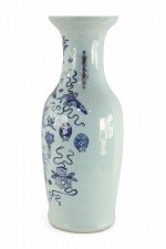 Chinese Off-White and Blue Symbol Patterned Porcelain Urn