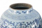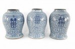 Chinese Off-White and Blue Vine Character Porcelain Urn Vases