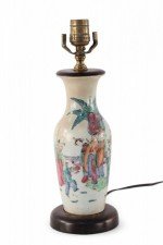 Chinese Off-White and Figurative Scene Porcelain Urn Table Lamp