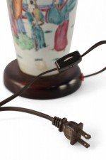 Style: Asian Materials & Techniques: Brass, metal, porcelain, wood Category: Lighting Condition: Ships without a shade.