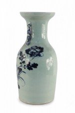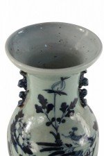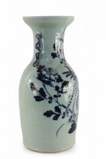 Chinese Off-White and Navy Blue Bird Motif Porcelain Urn