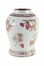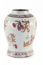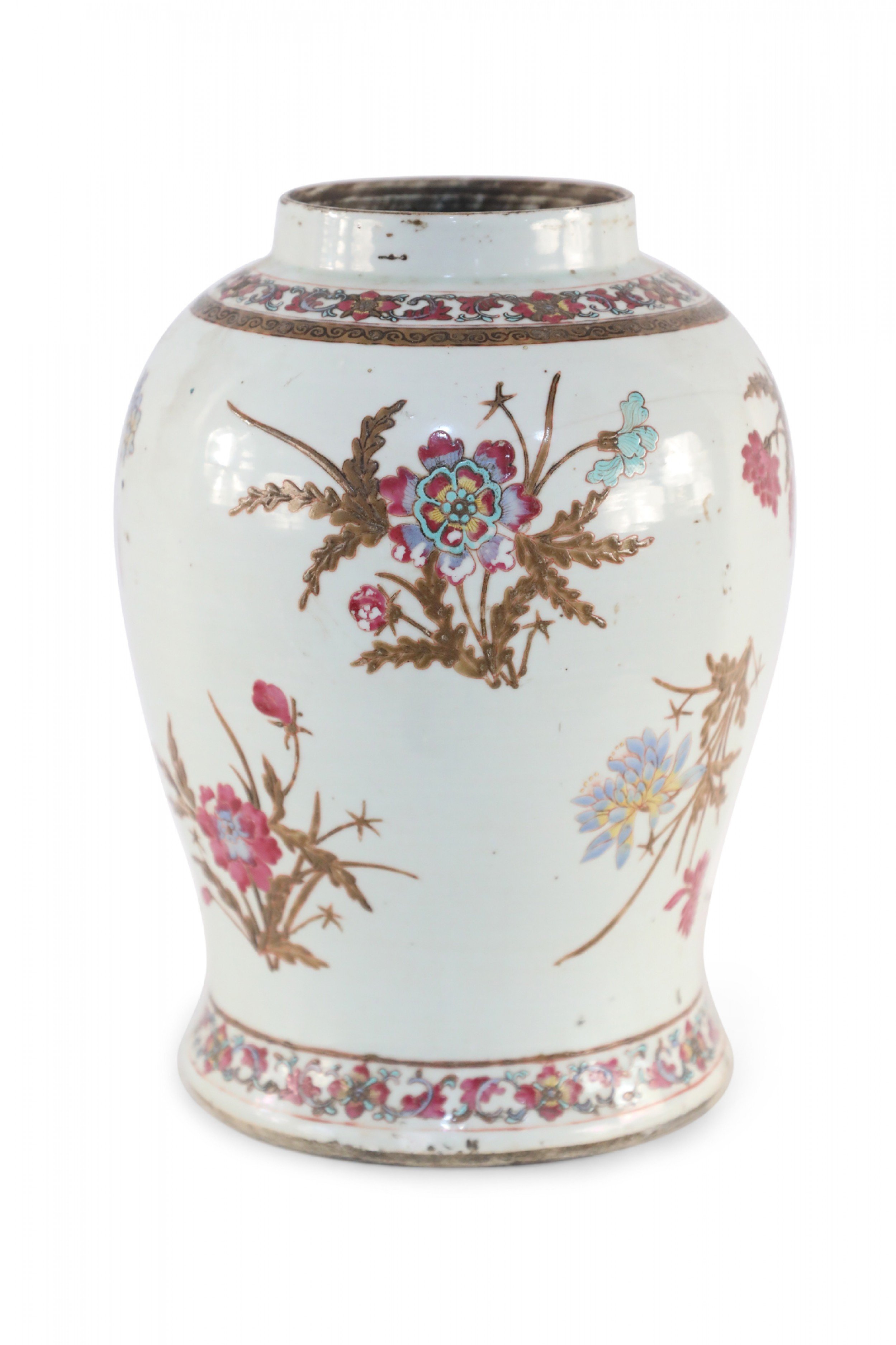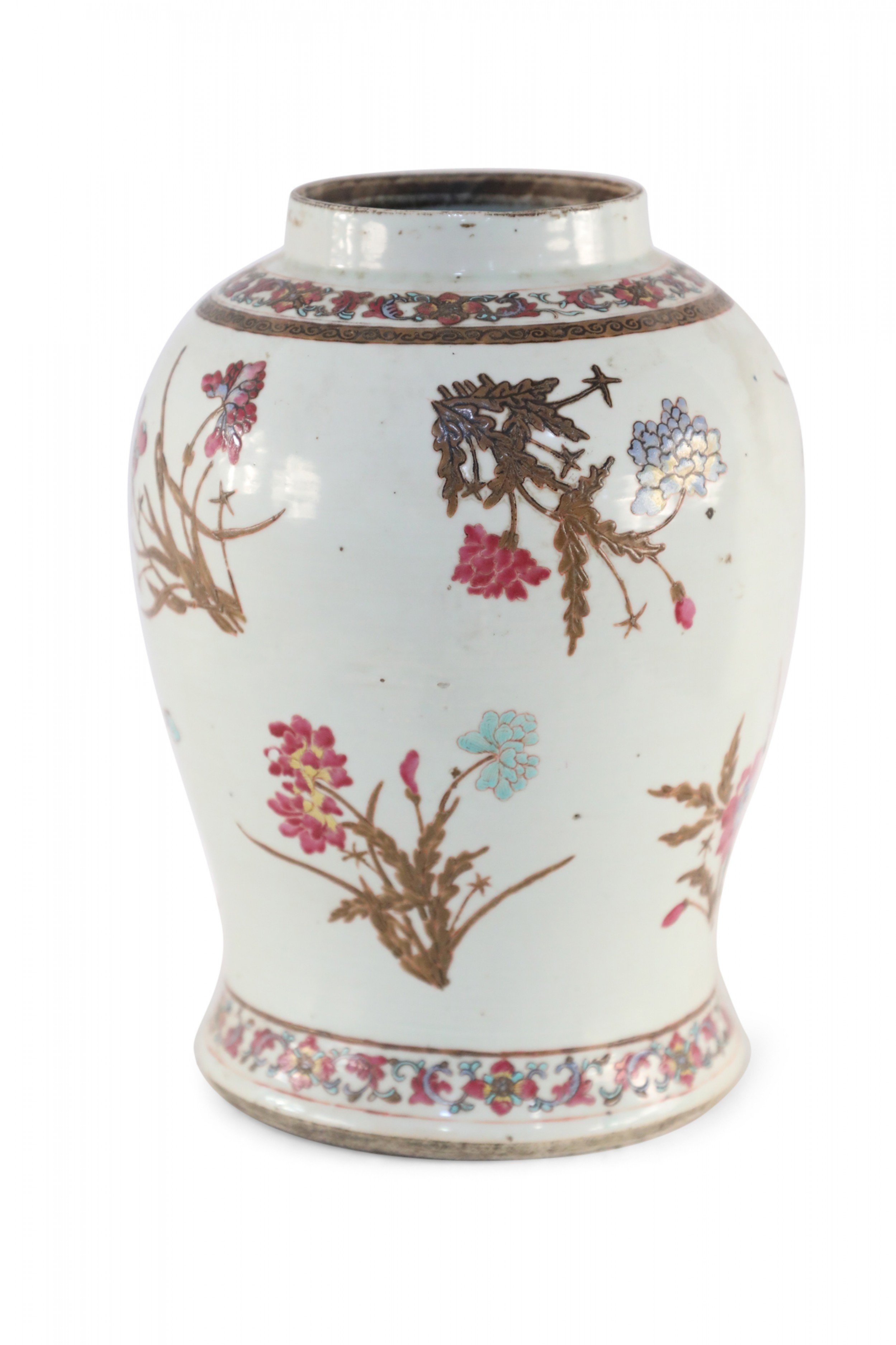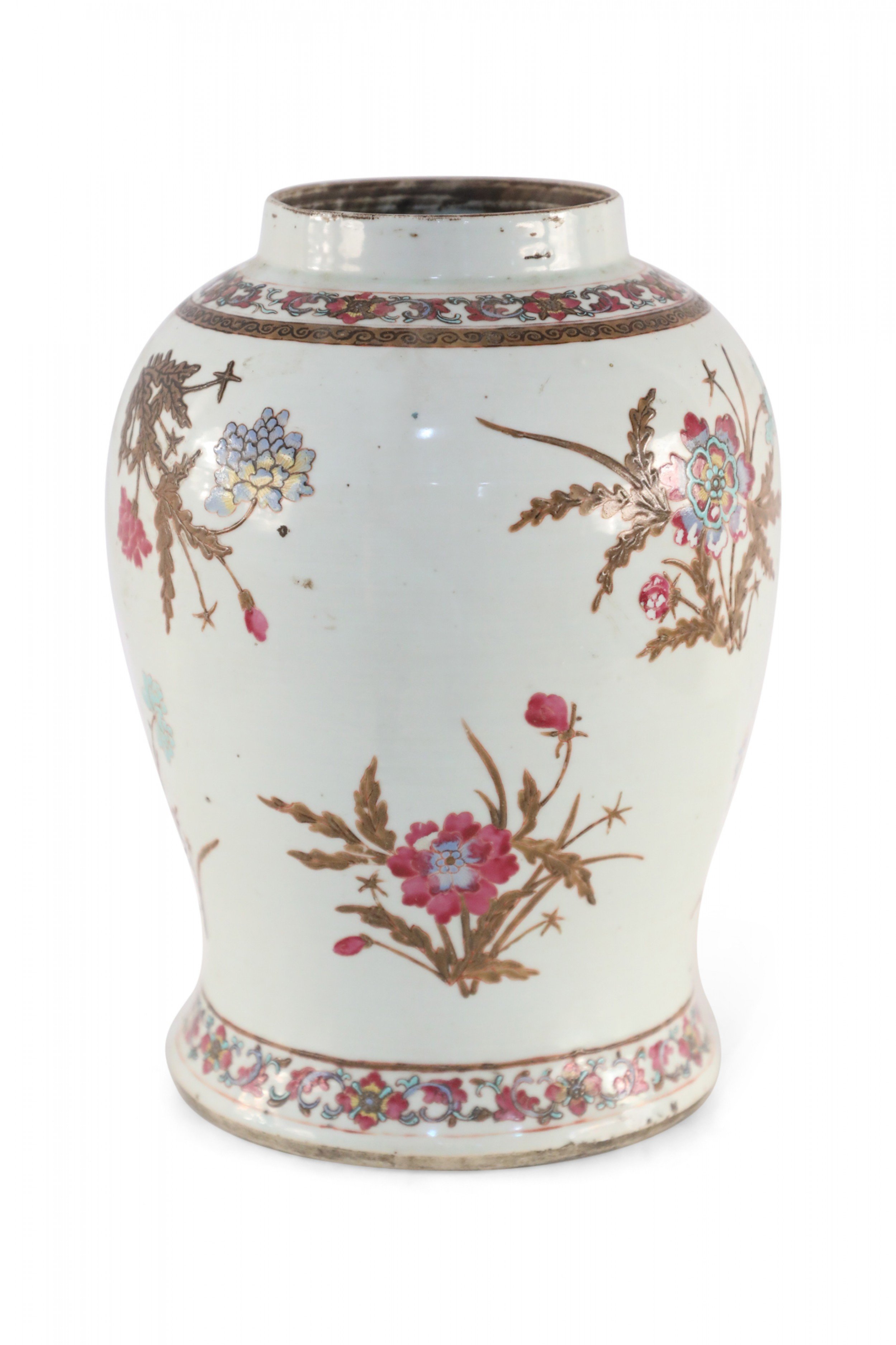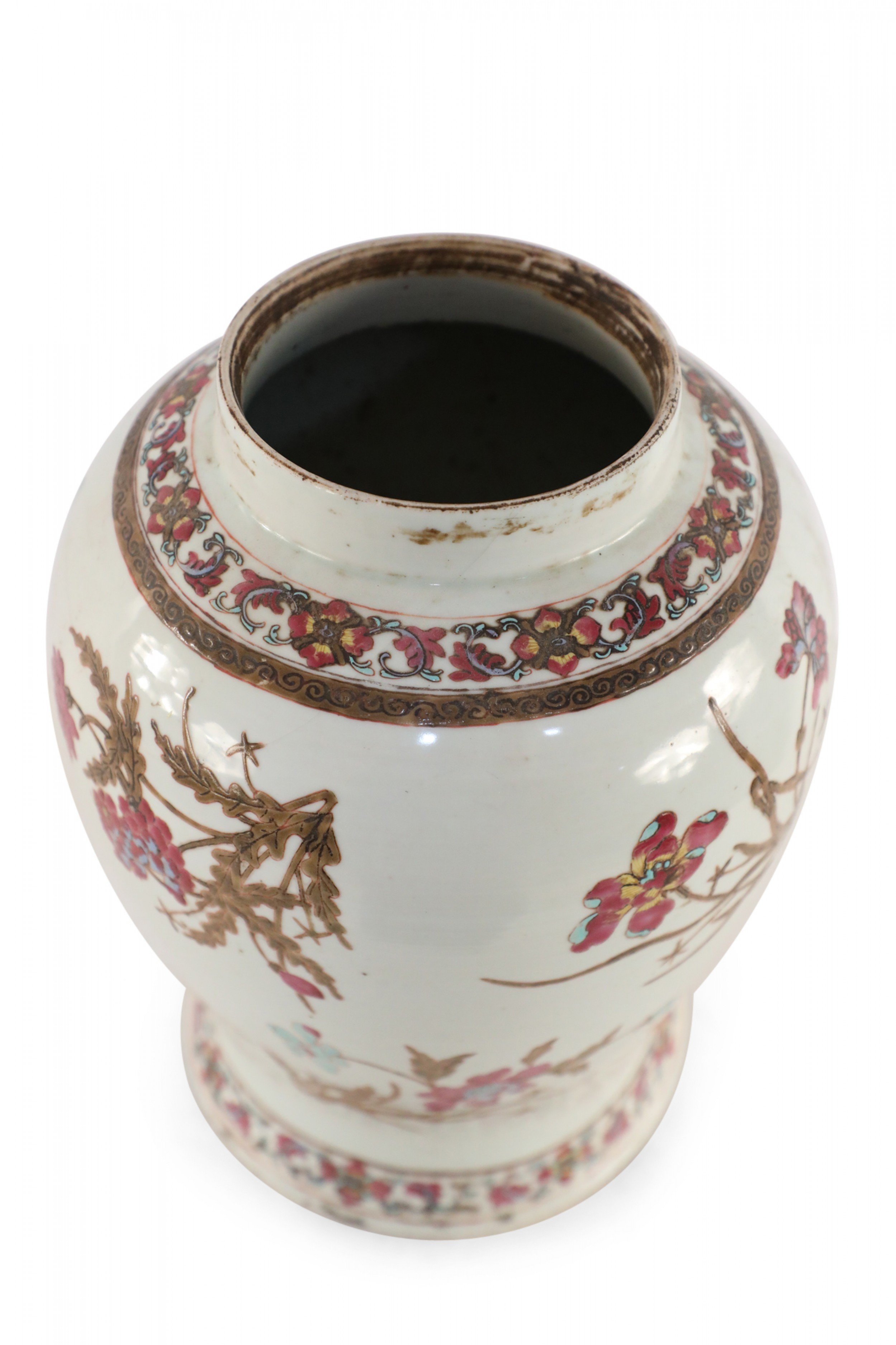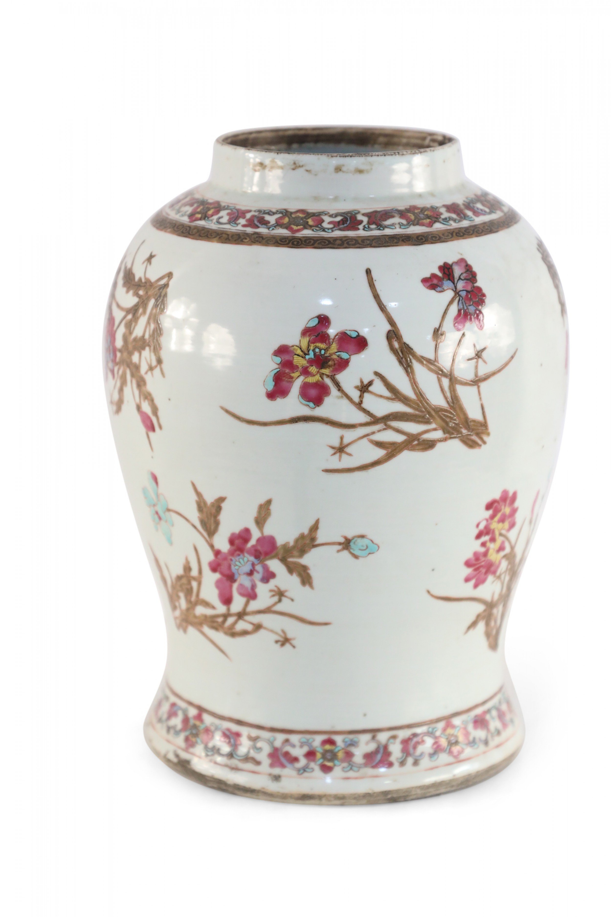 Chinese White, Brown, and Magenta Floral Motif Porcelain Vase