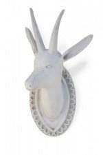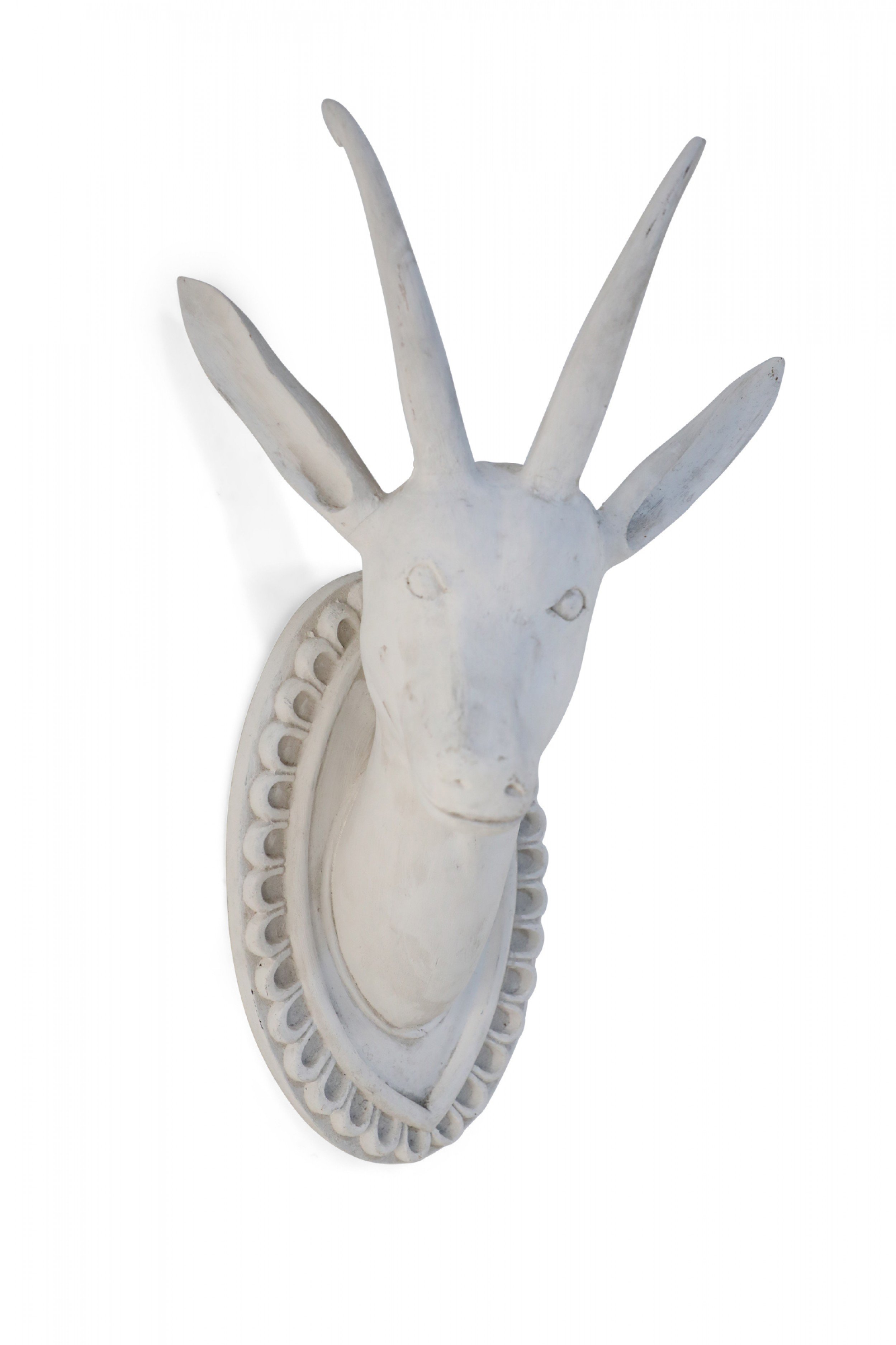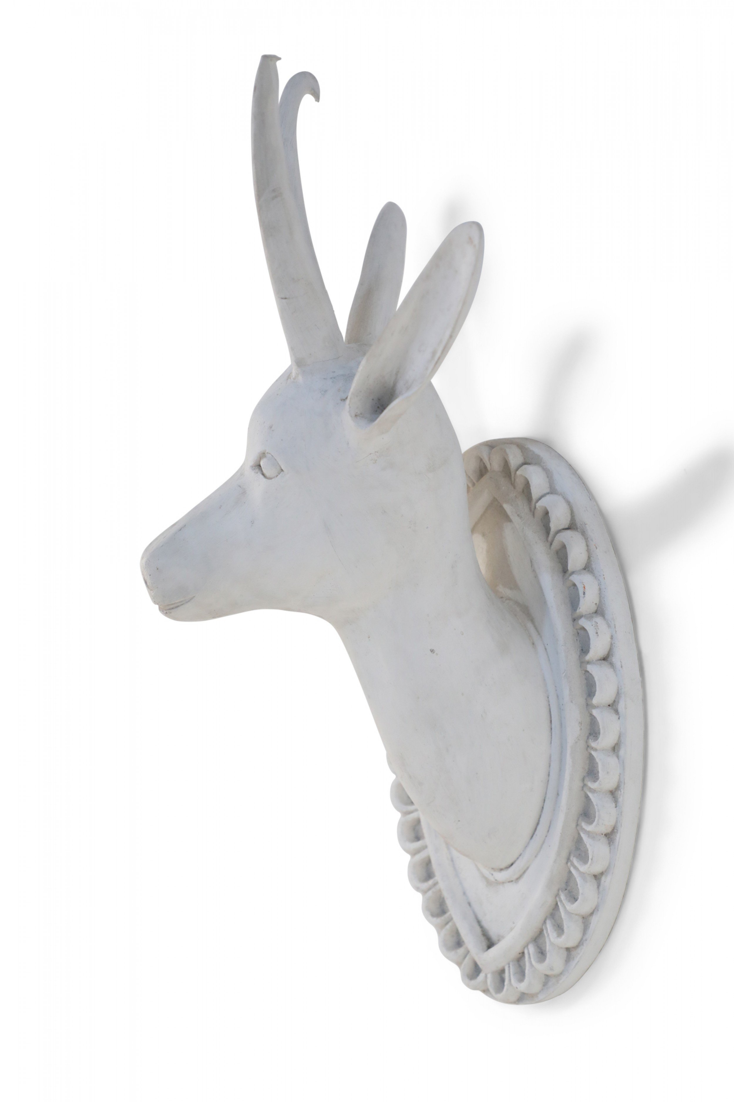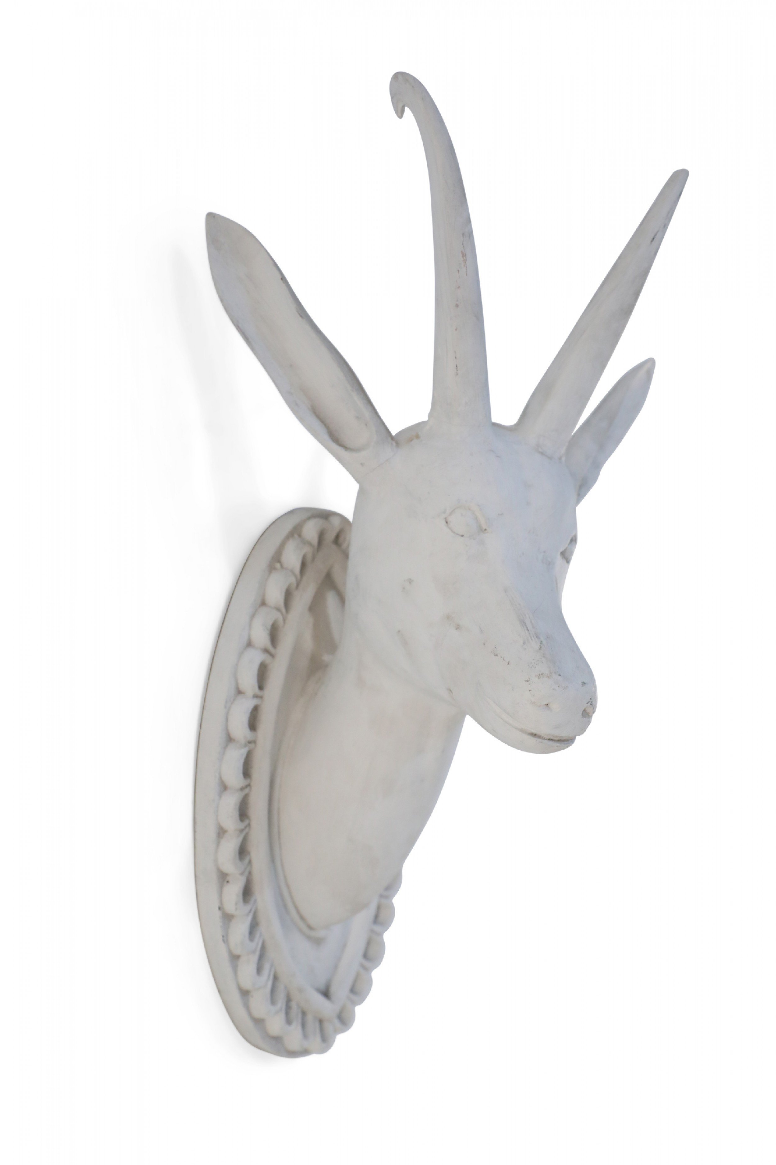Chinese White Gesso Horned Goat Head Wall Plaque