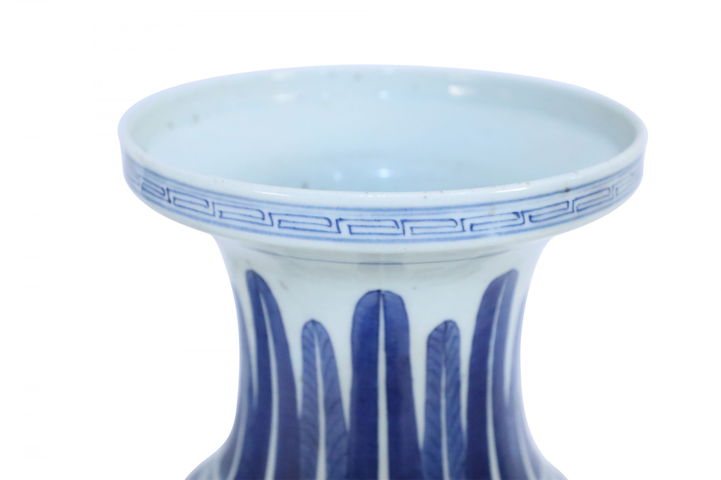 Chinese White and Blue Feather and Floral Motif Porcelain Urn