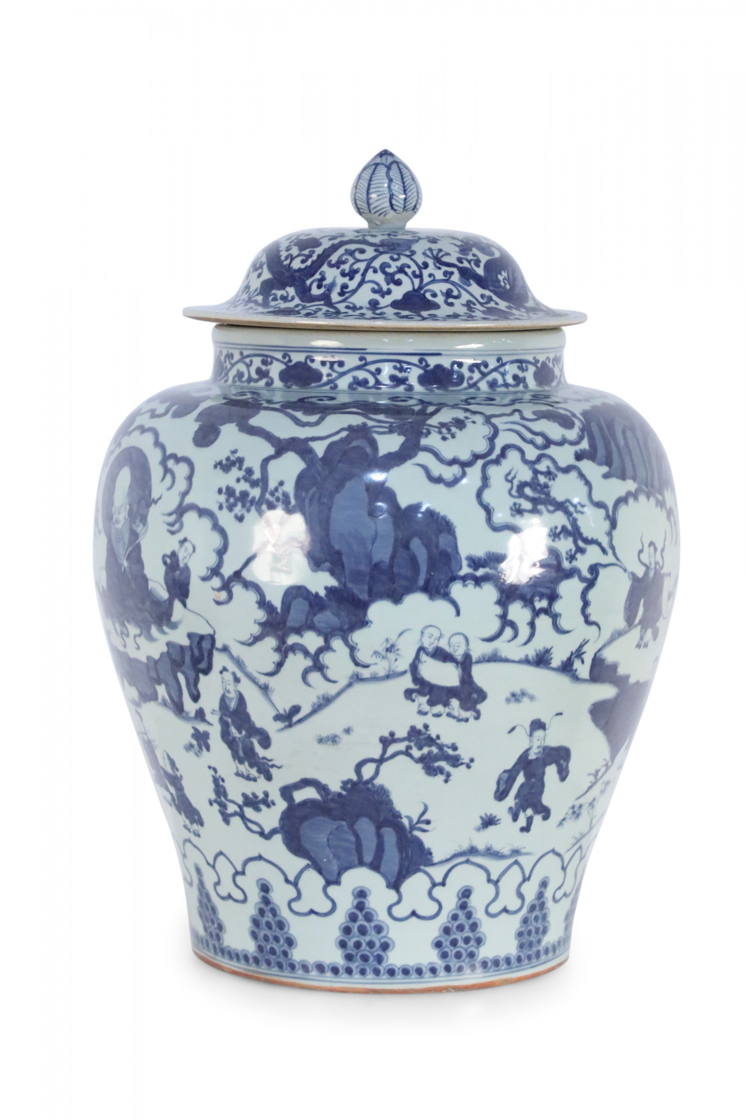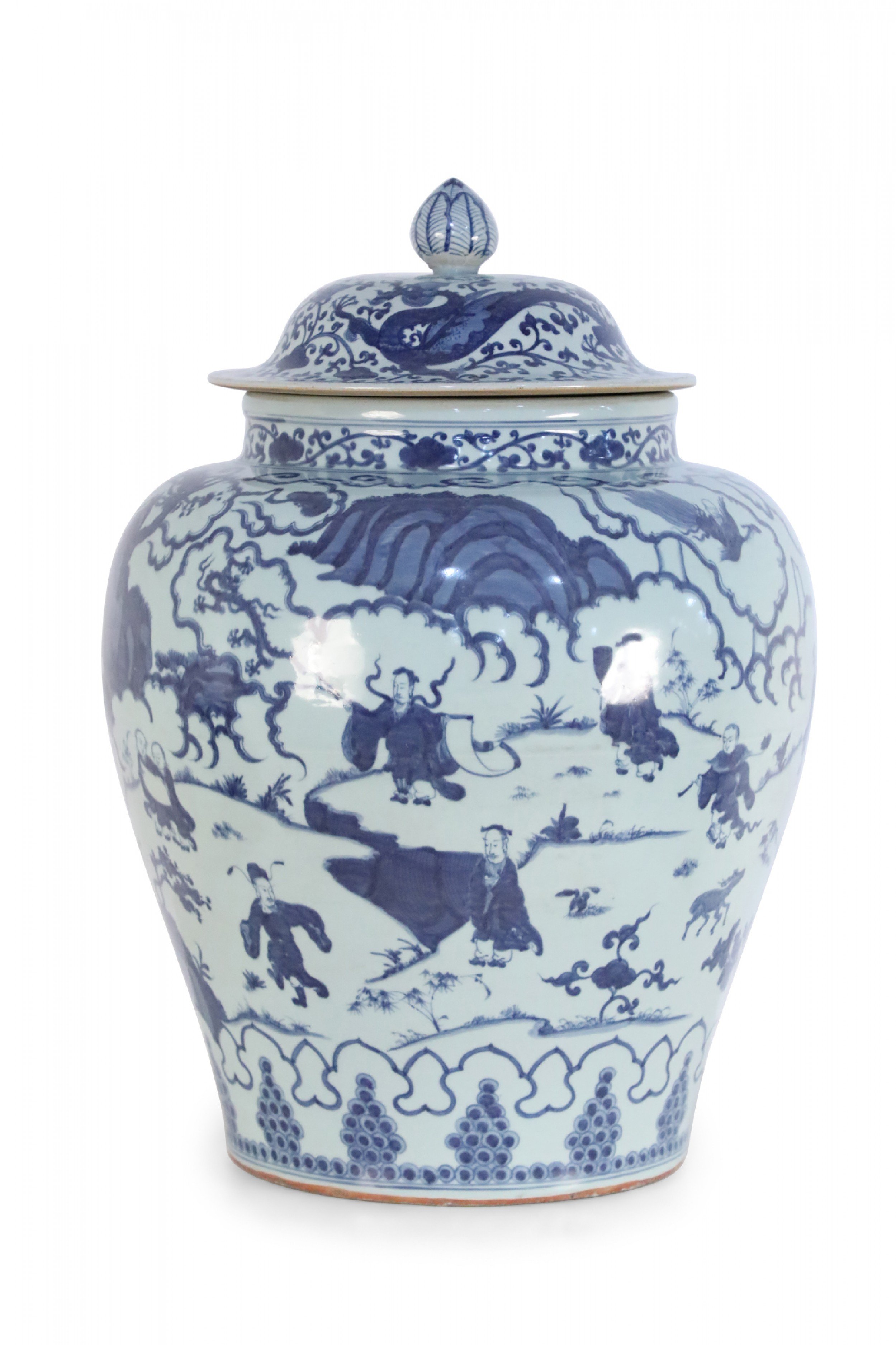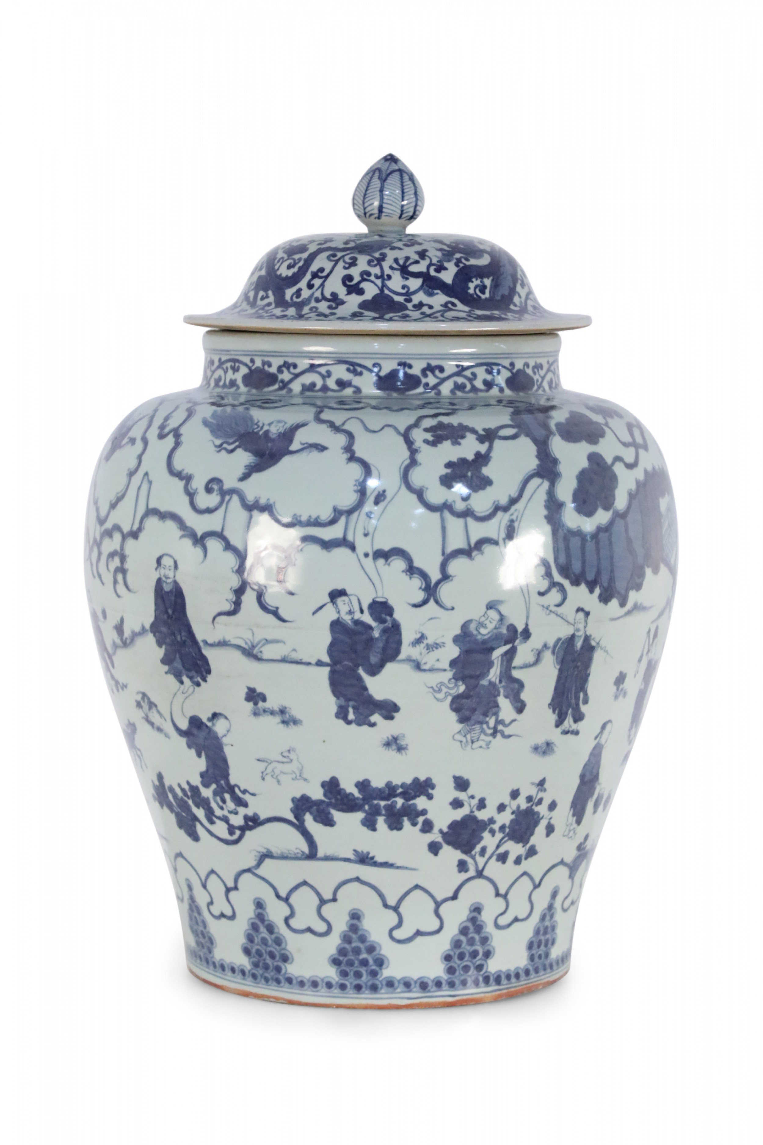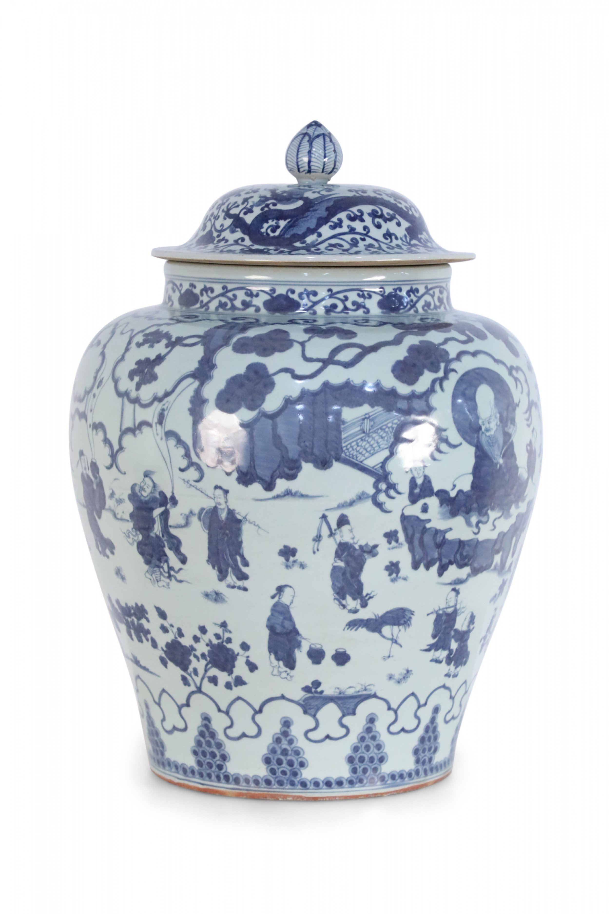 Chinese White and Blue Figurative Porcelain Ginger Jar