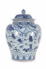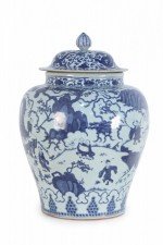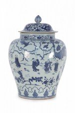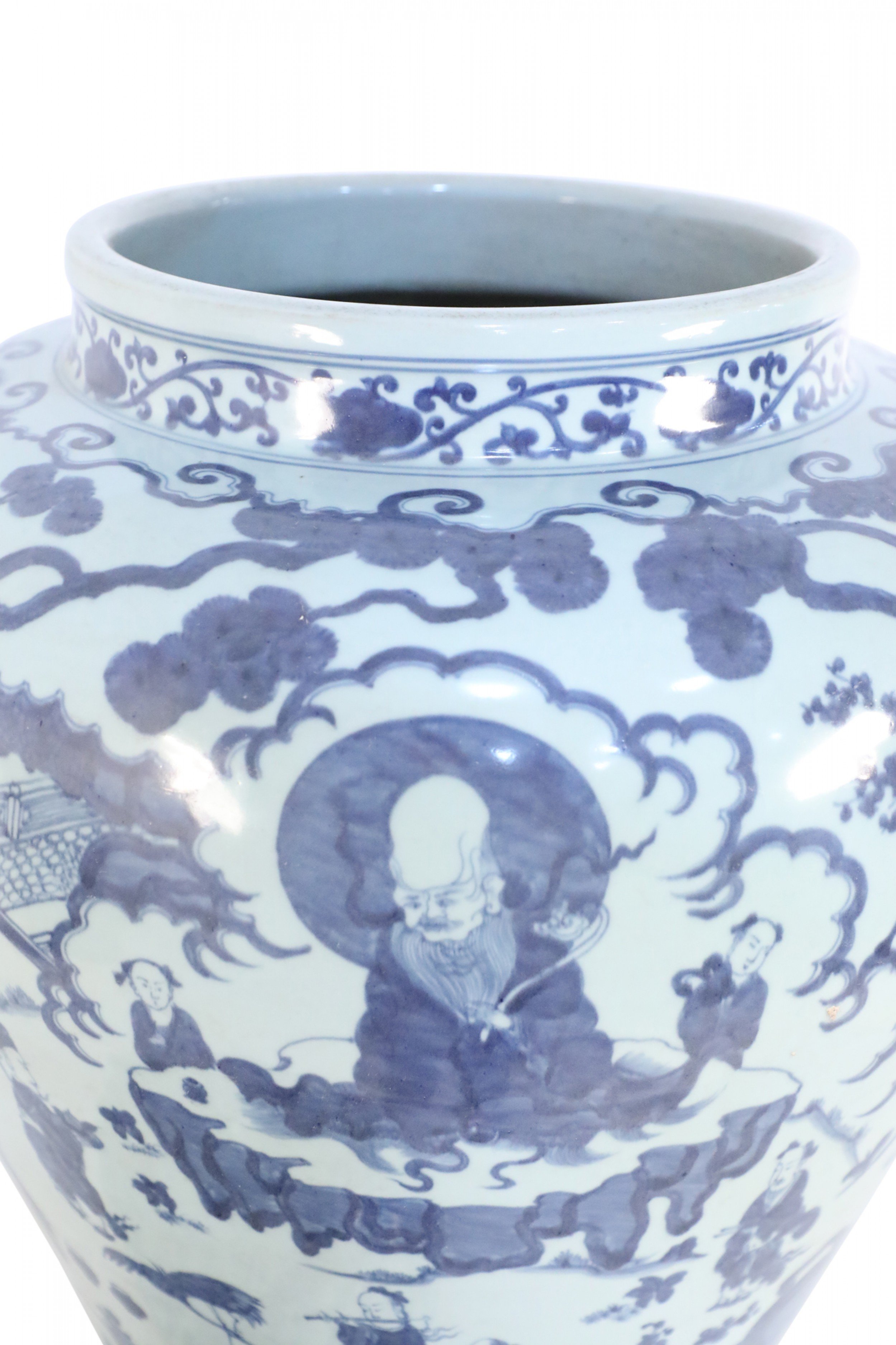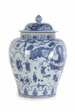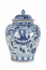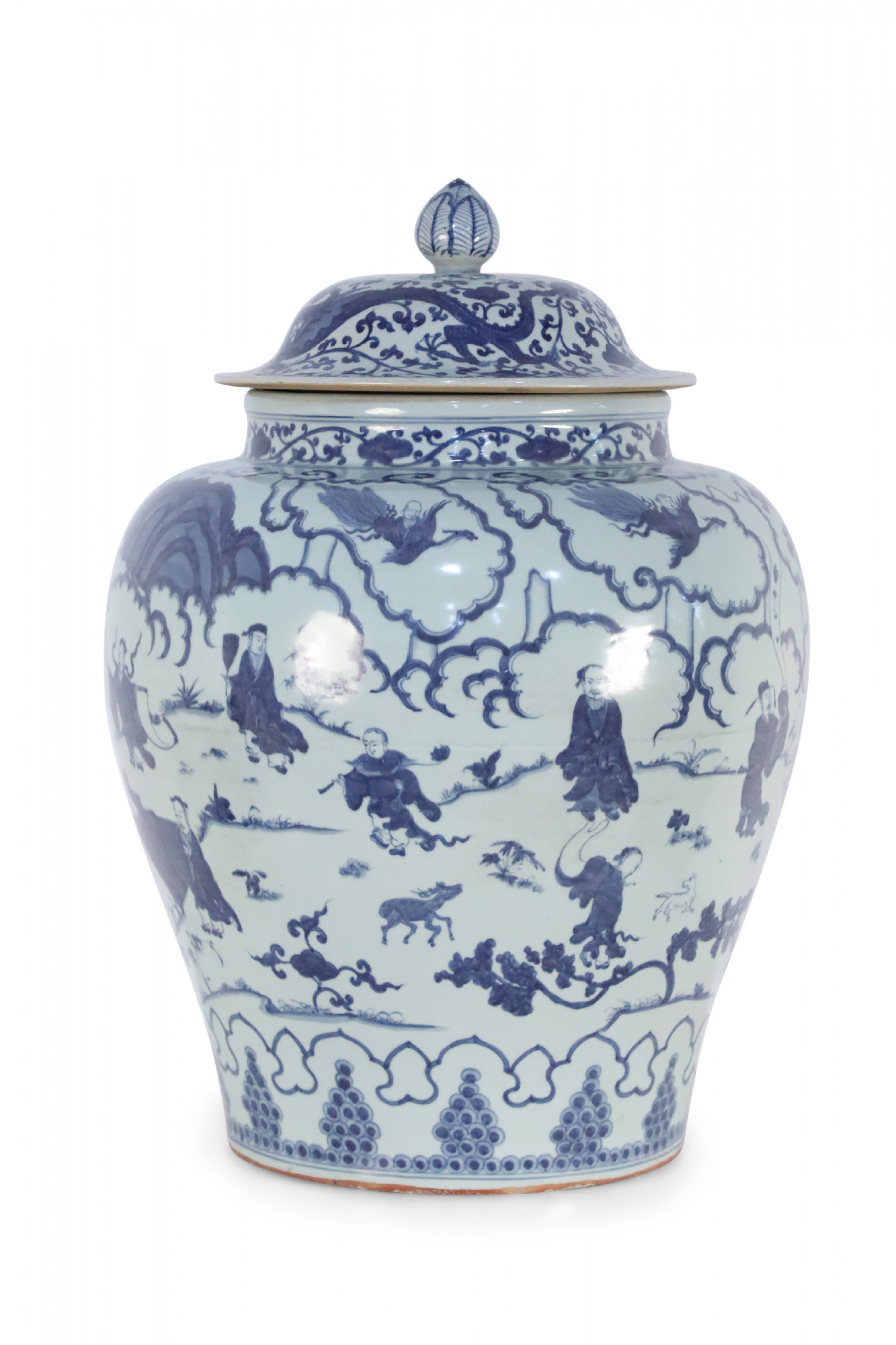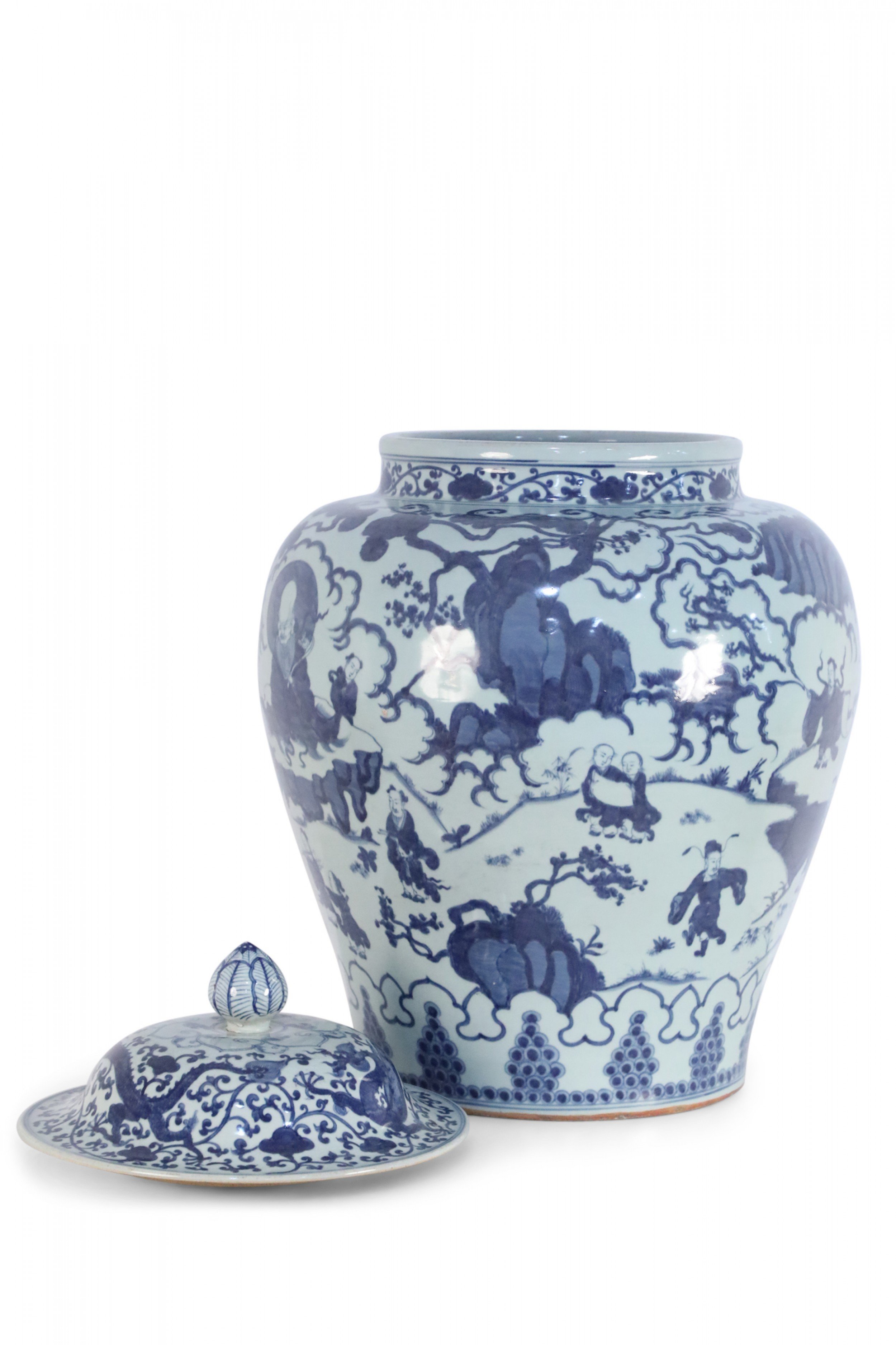 Chinese White and Blue Figurative Porcelain Ginger Jar
