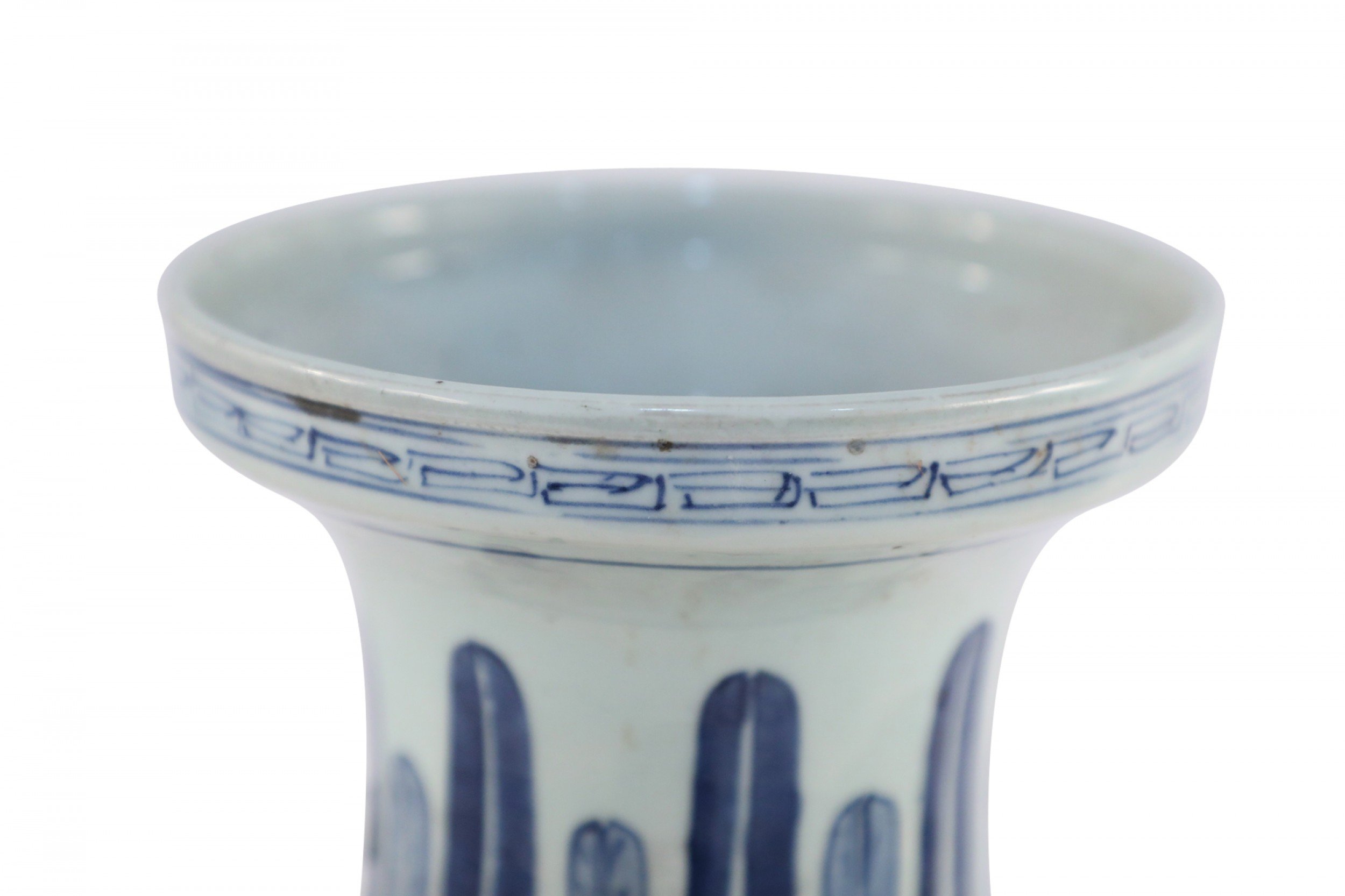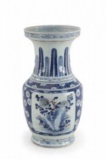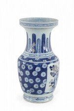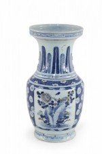 Chinese White and Blue Floral and Feather Motif Porcelain Urn