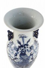 Chinese White and Blue Garden and Bird Design Porcelain Urn