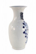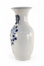 Chinese White and Blue Lily Pad and Floral Design Porcelain Urn