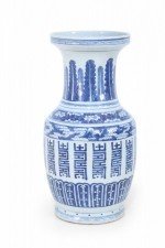 Chinese White and Blue Multi-Pattern Porcelain Urn