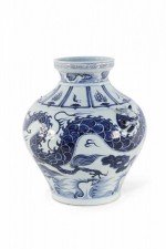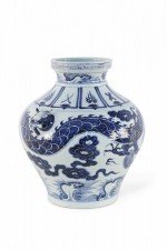 Chinese Yuan Style White and Blue Dragon Motif Porcelain Pot
