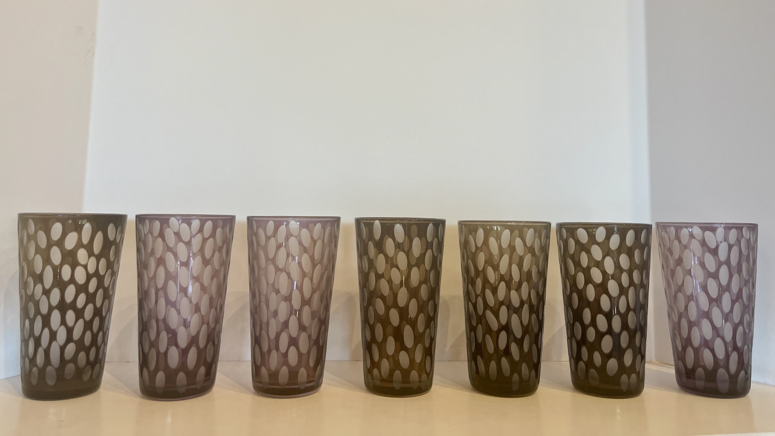 SET of 7 Assorted smoked amber pebbled Hi-ball cocktail glasses (Diane Von Furstenberg) (AVAILABLE INDIVIDUALLY)(PRICED AS SET).