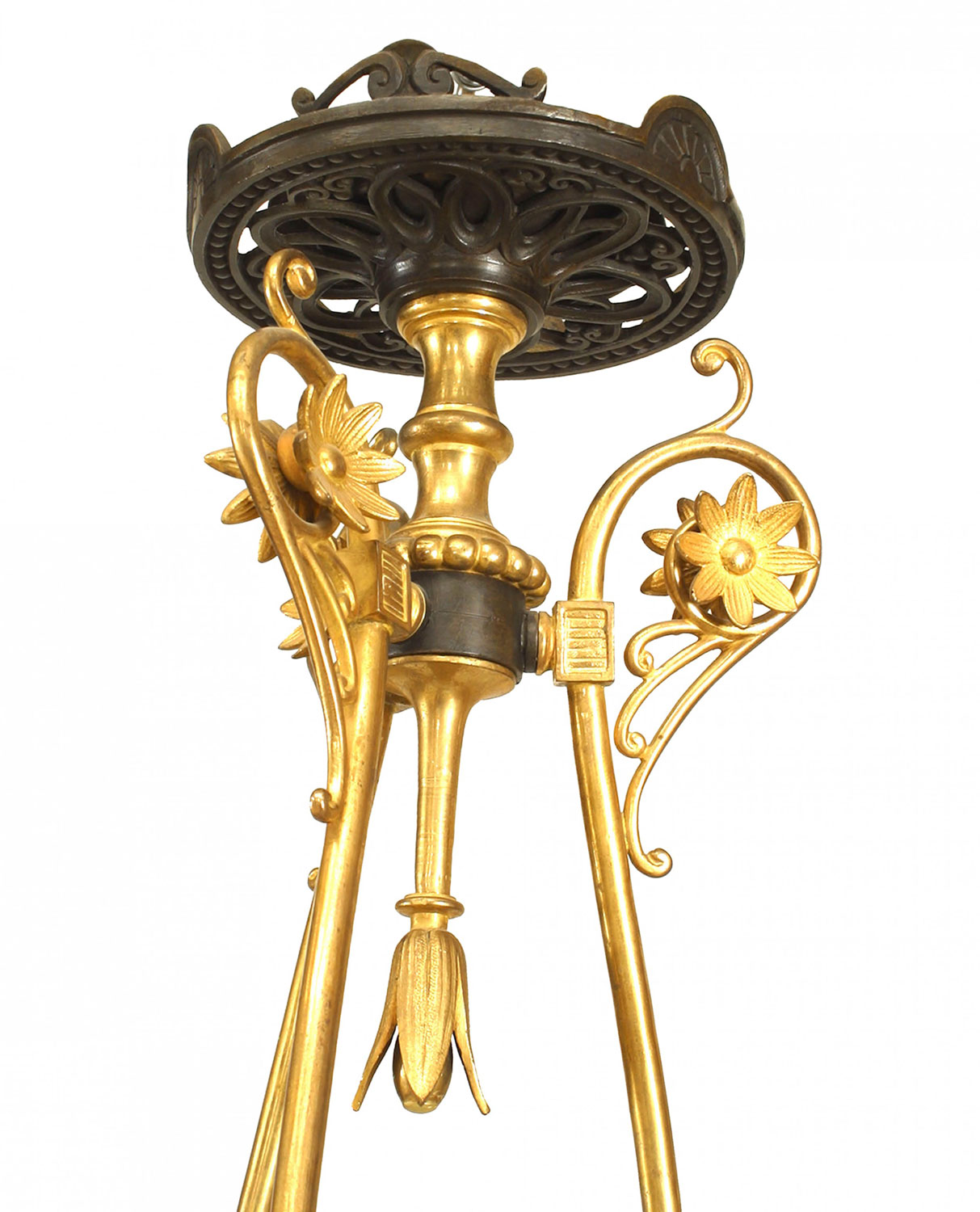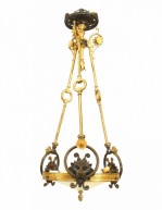 English Regency Glass and Bronze Lion Pendant Chandelier