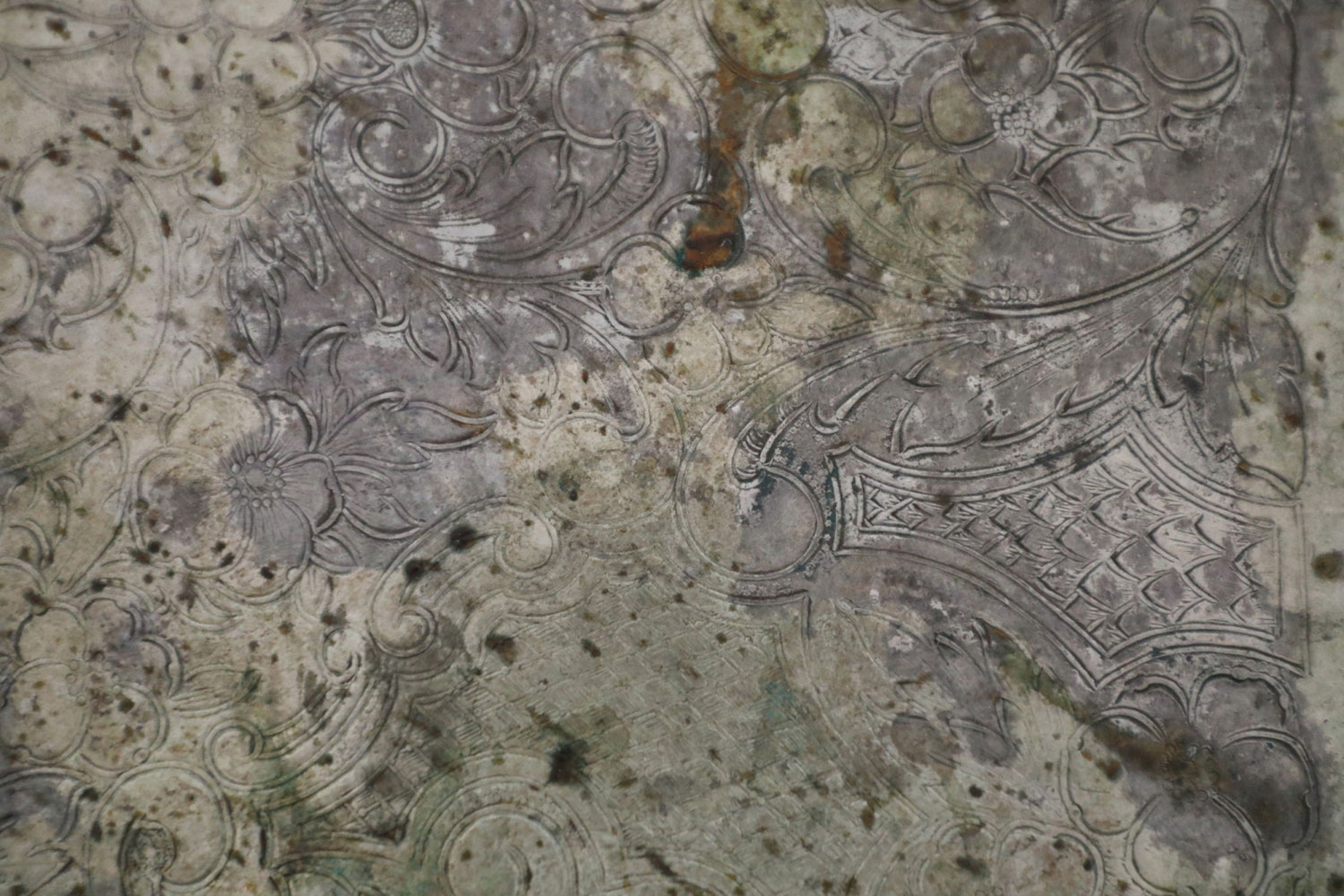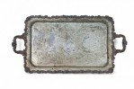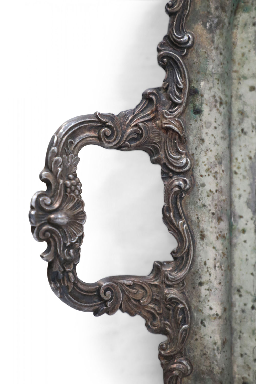 English Victorian Silver Plate Engraved Serving Tray with Patina