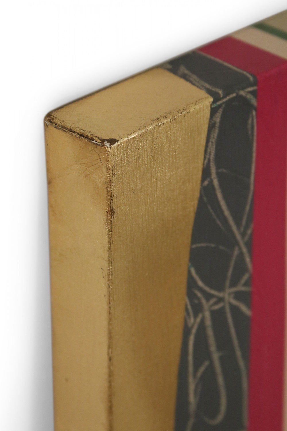 Style: Contemporary/Post-War Design Materials & Techniques: Metal, paper Category: Cleared Art Condition: Small puncture in canvas (pictured).