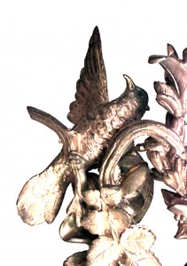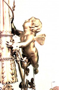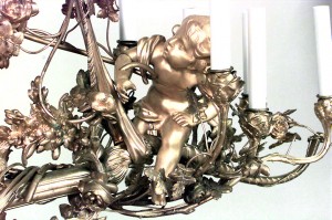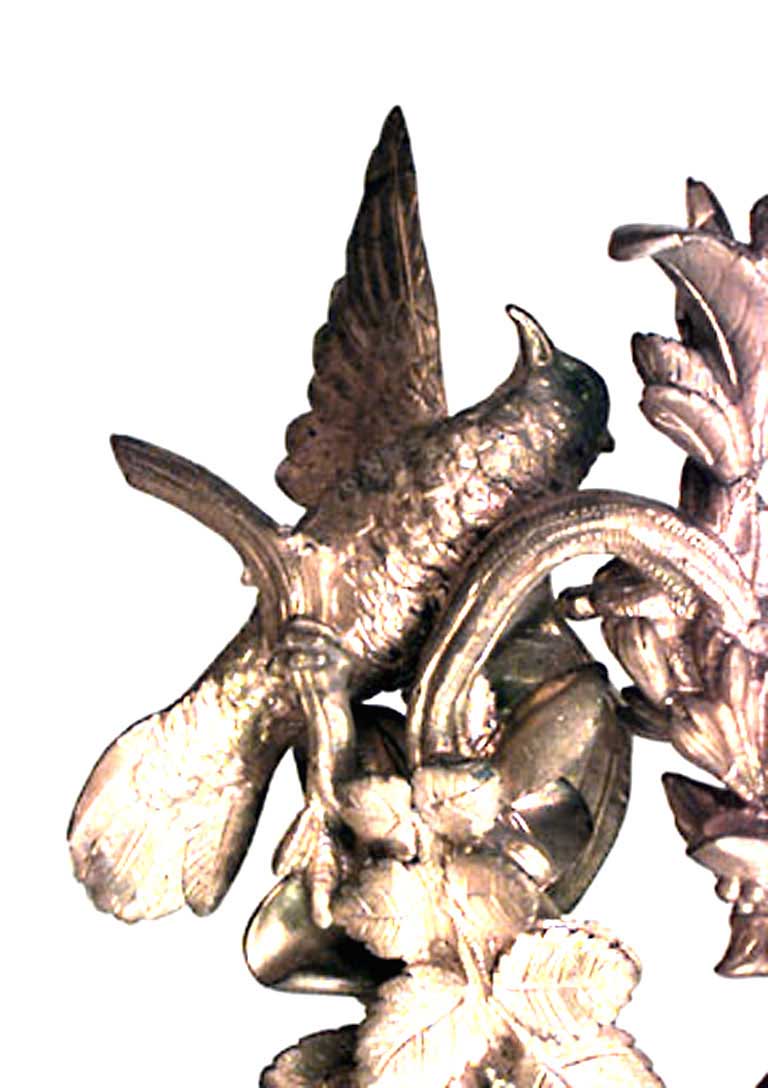 French Louis XVI Style Bronze Dore Cupid and Bird Chandelier