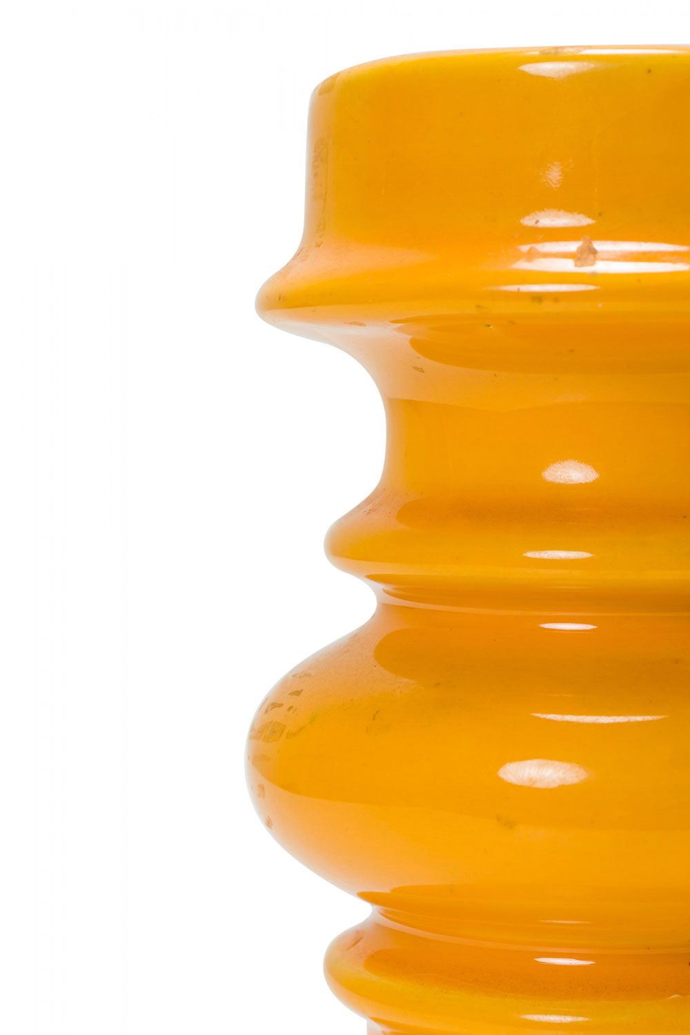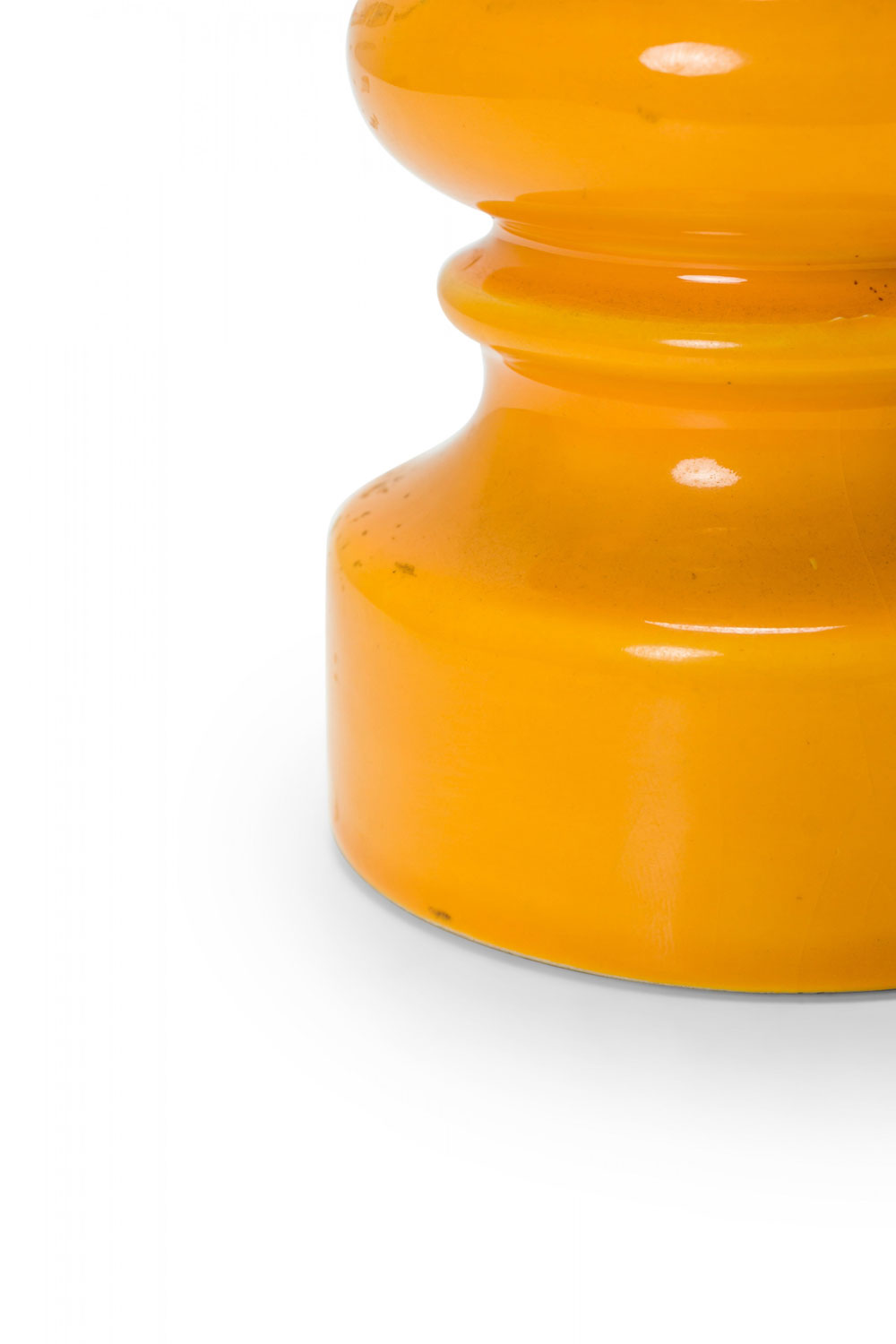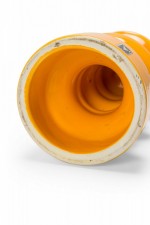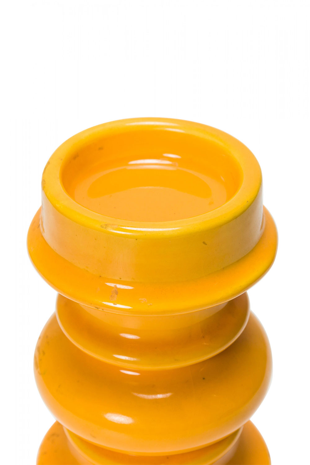 Mid-Century turned design cermic candlestick with a bright yellow glaze. (label on side, GALLO)
