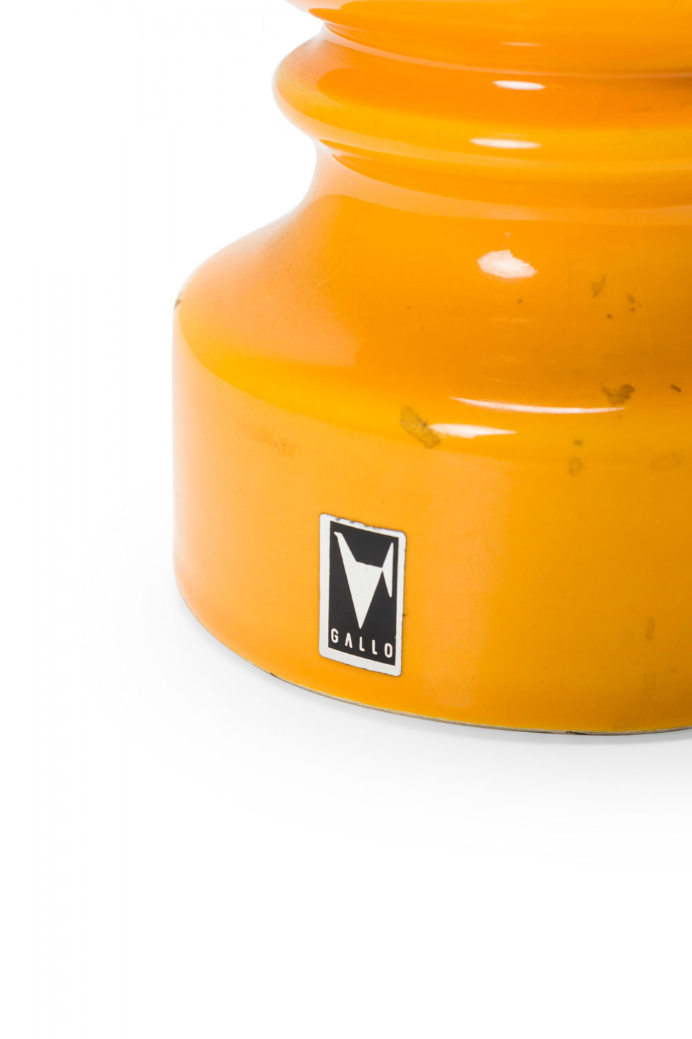 Mid-Century turned design cermic candlestick with a bright yellow glaze. (label on side, GALLO).