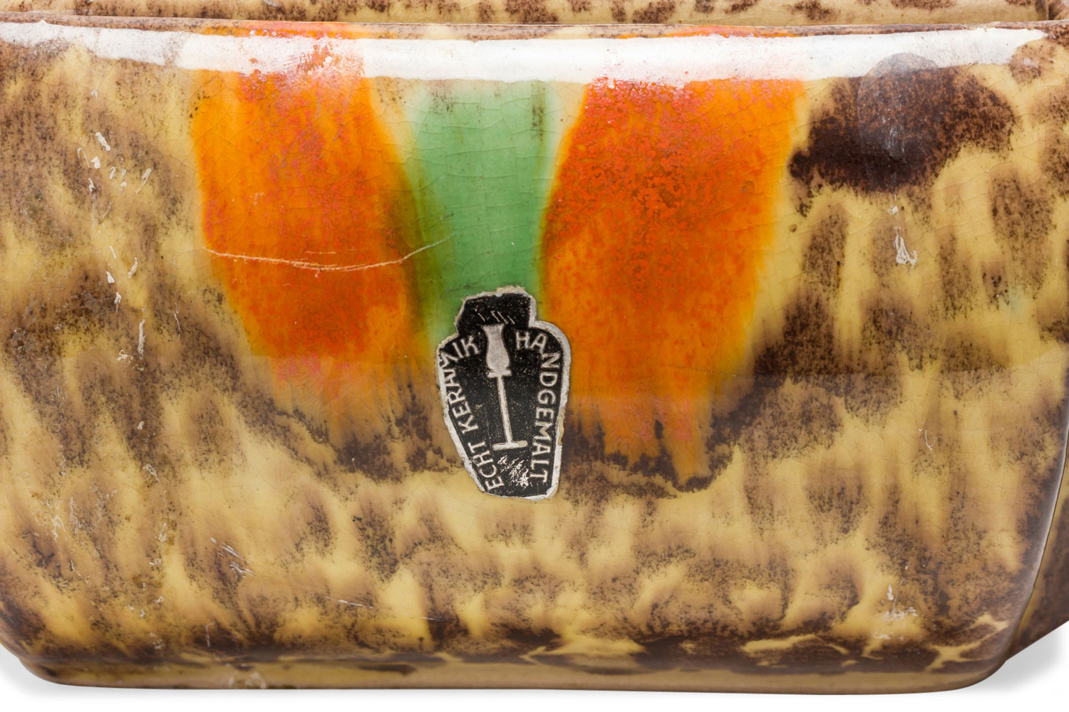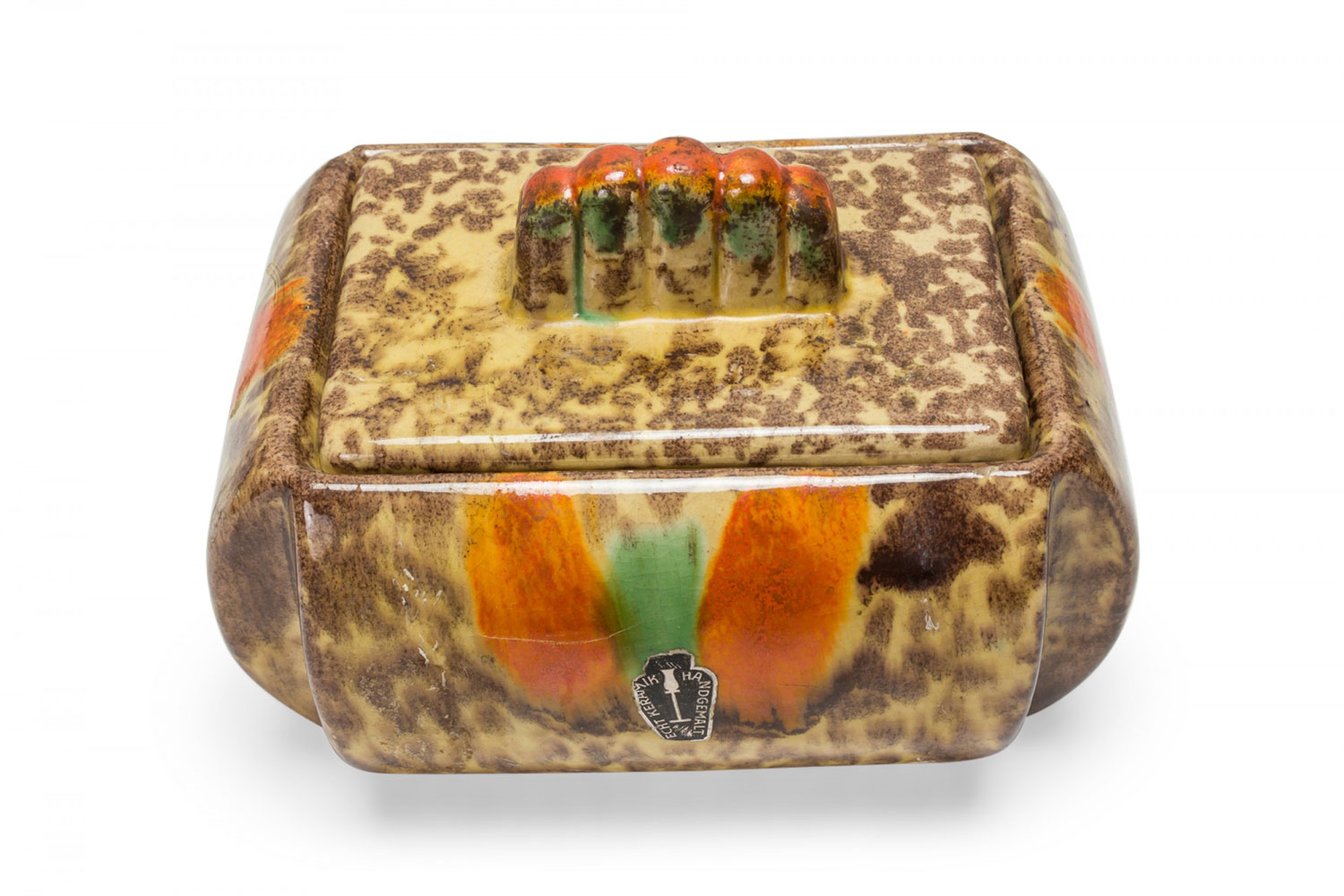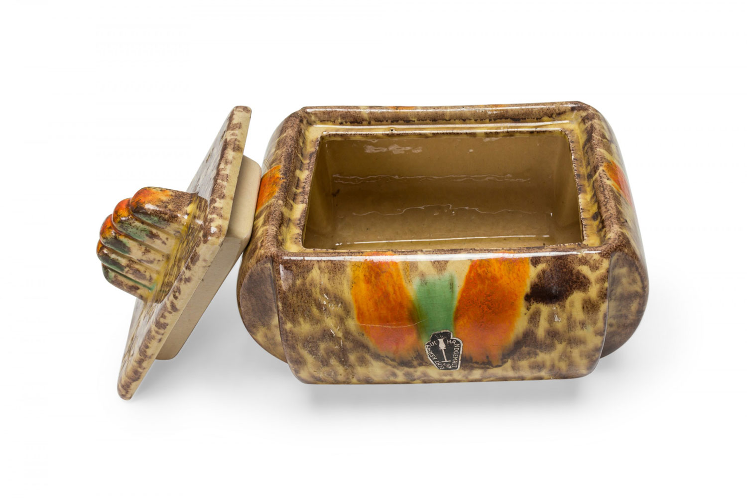 German Mid-Century Brown, Beige, Orange and Green Speckle Glazed Ceramic Lidded Box