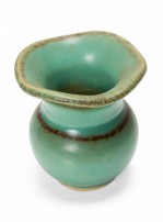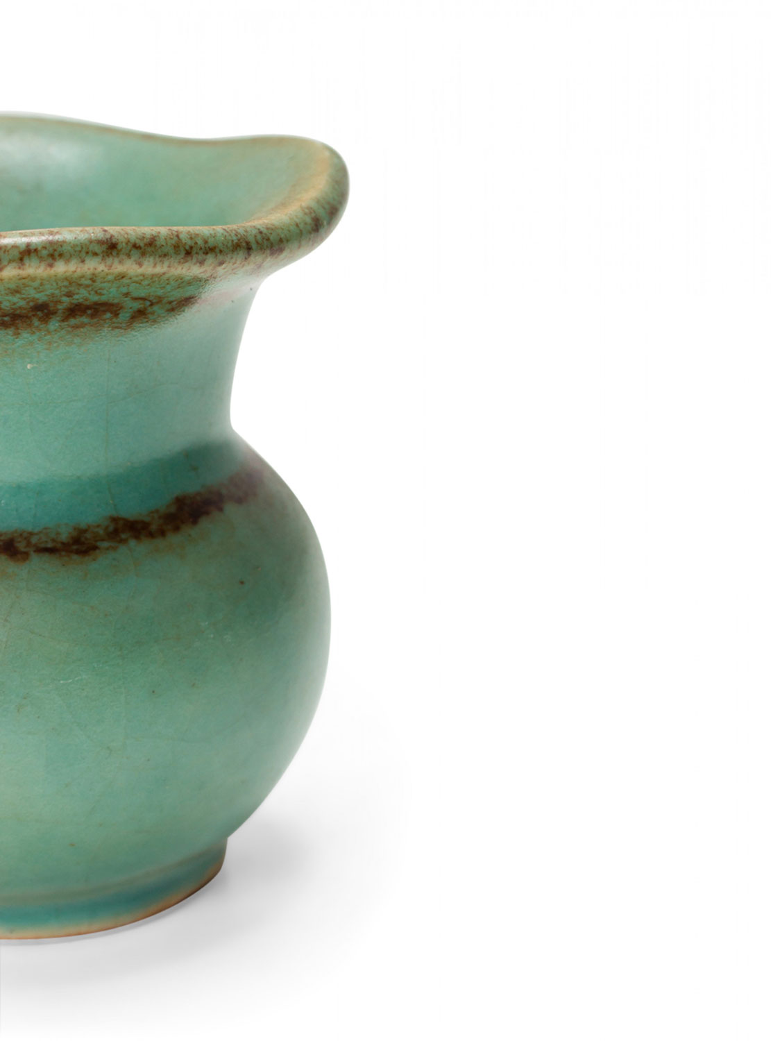 German Mid-Century Flared Rim Light Green and Brown Glazed Ceramic Vase
