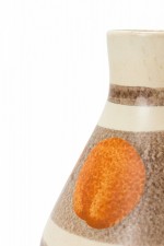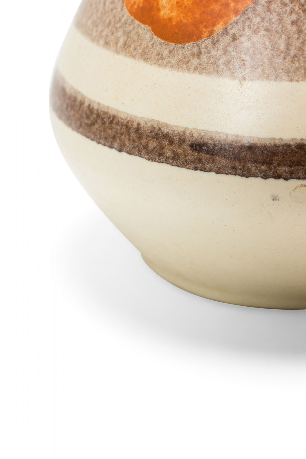German Mid-Century Orange and Gray Banded Design Beige Glazed Ceramic Vase