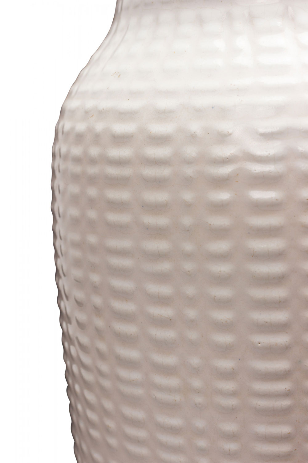 German Mid-Century Raised Grid Textured White Porcelain Vase