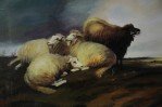 Group of Sheep in Field Oil Painting on Canvas