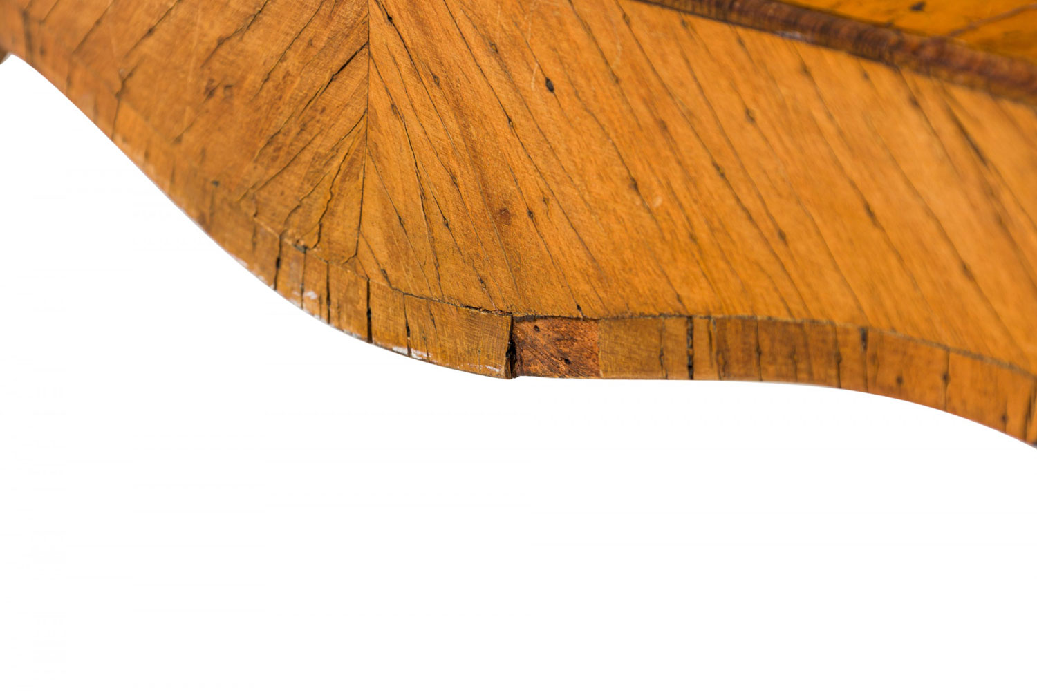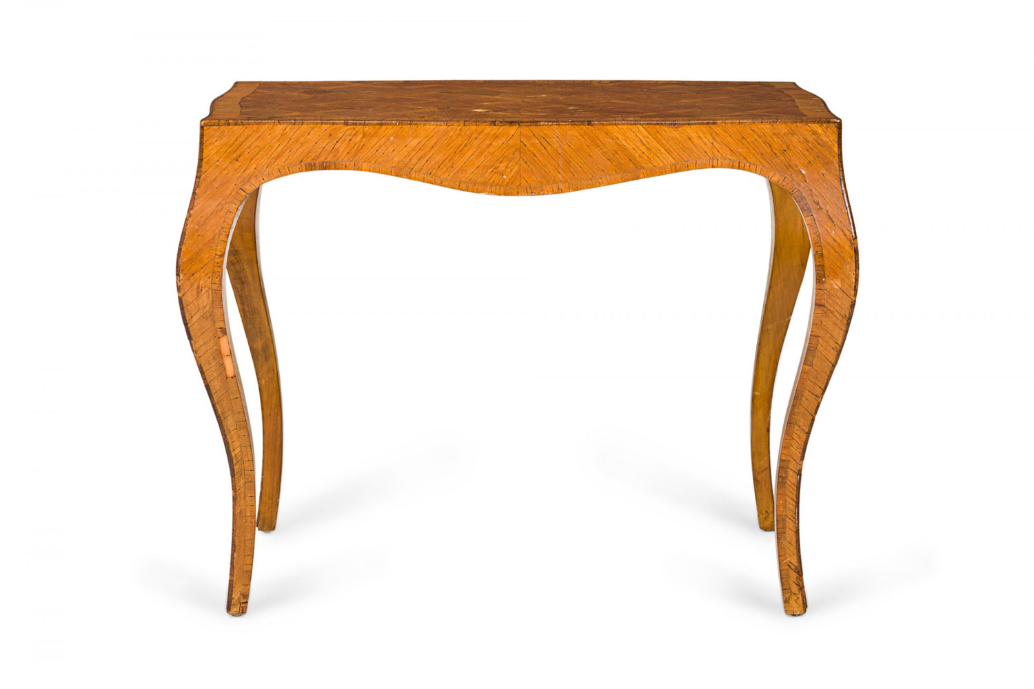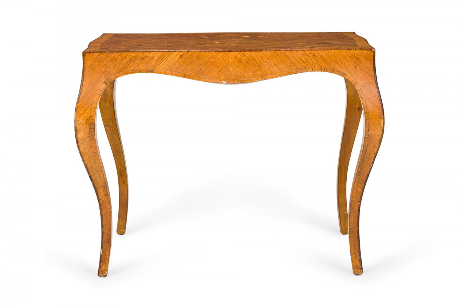 Italian Mid-Century parquetry veneer end / side table with curved legs..