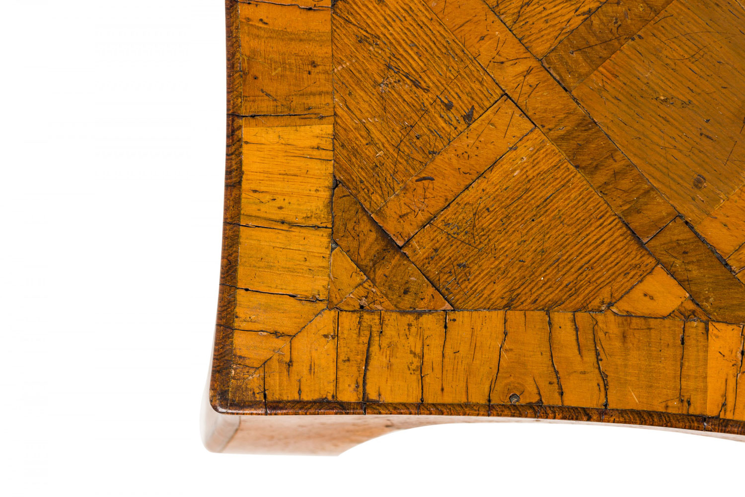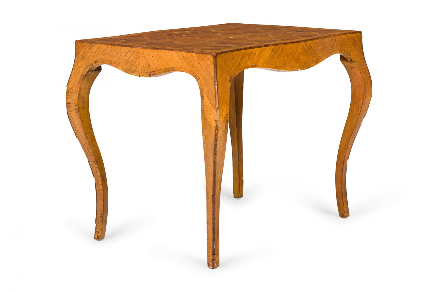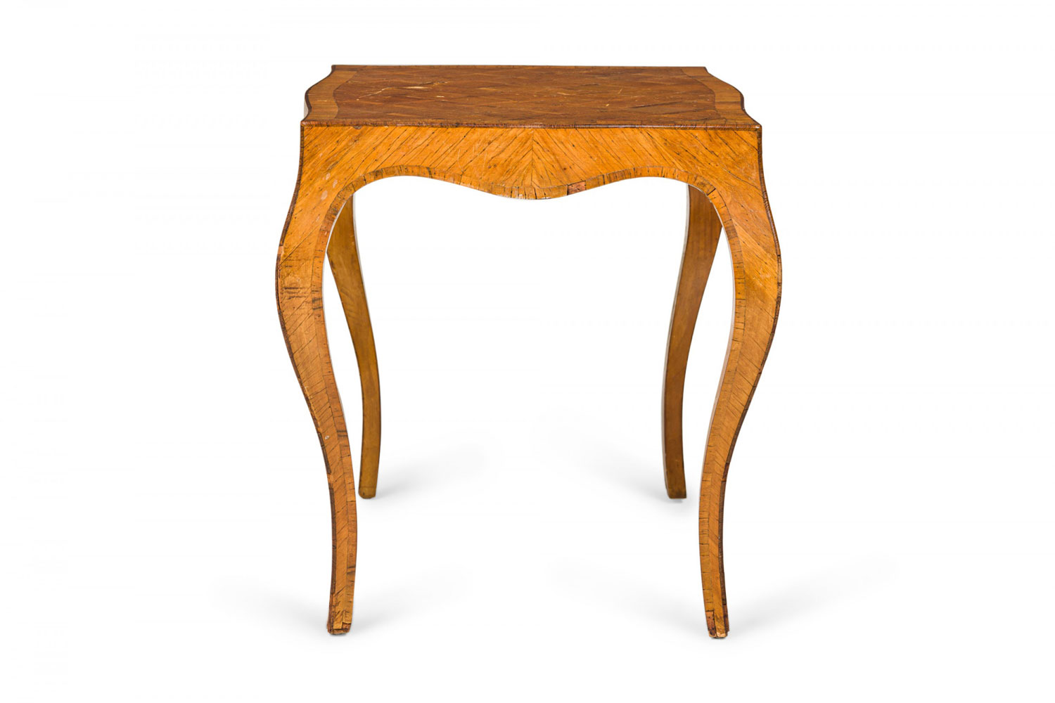 Italian Mid-Century parquetry veneer end / side table with curved legs.