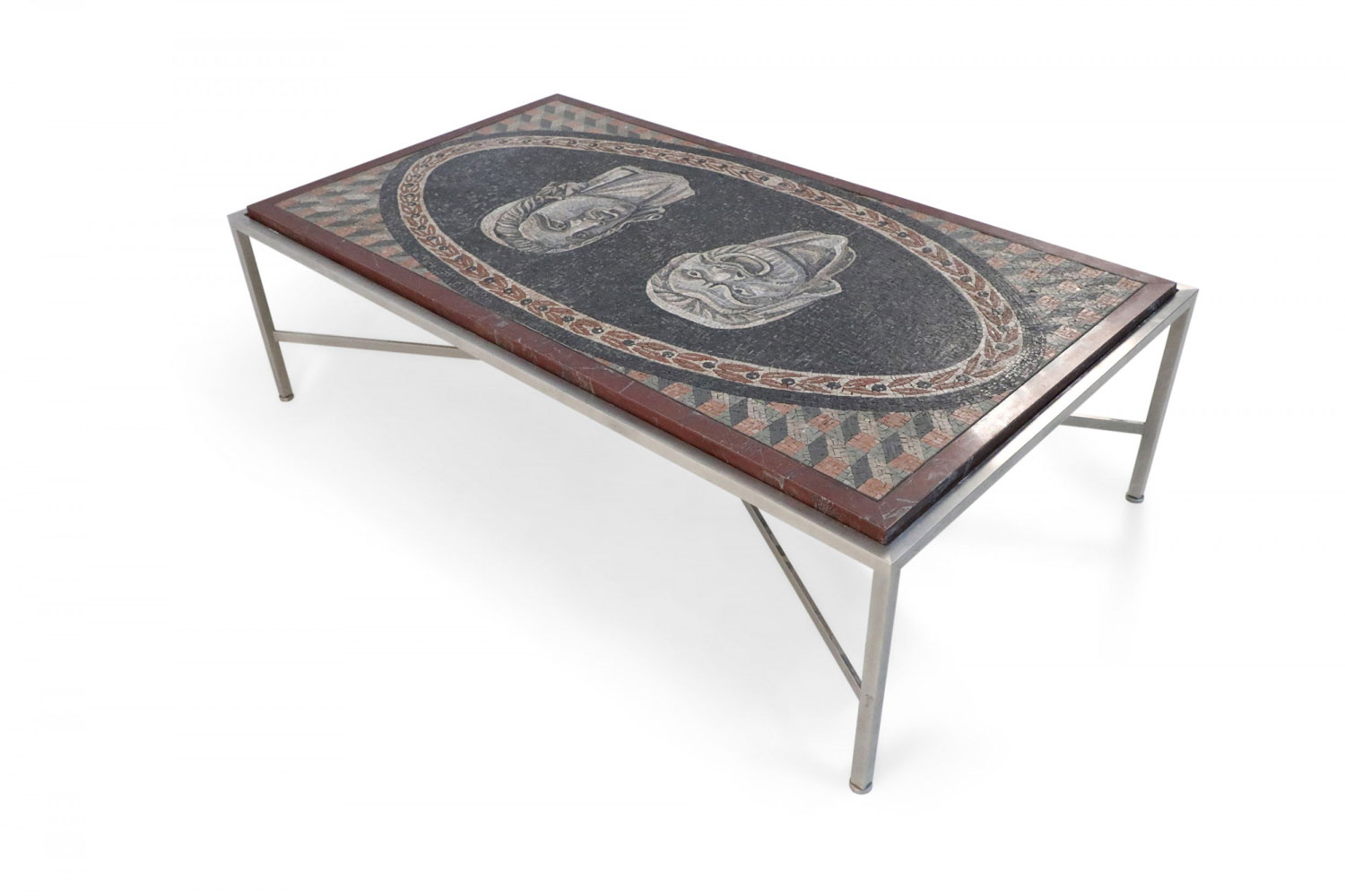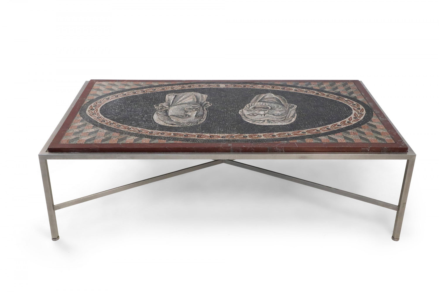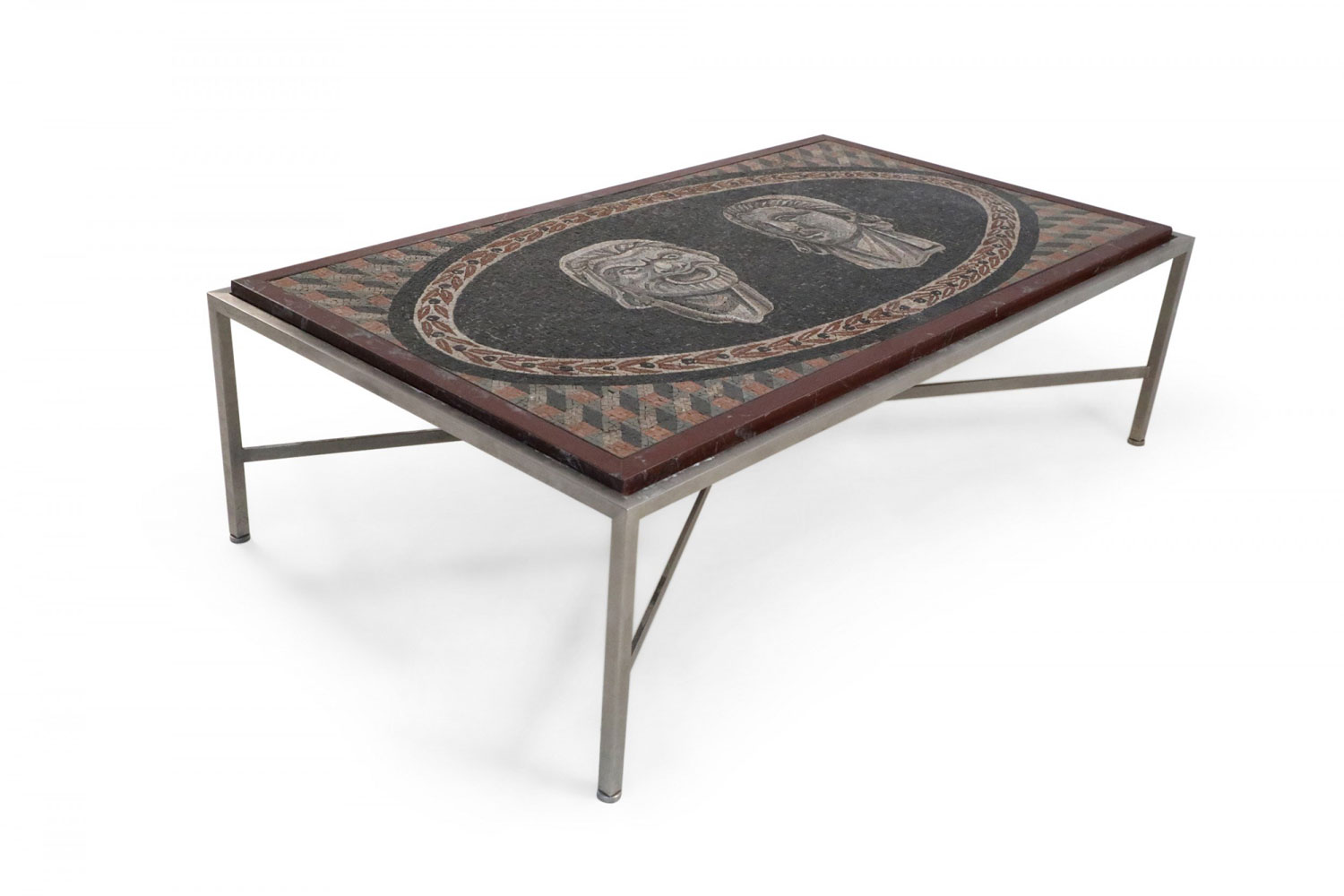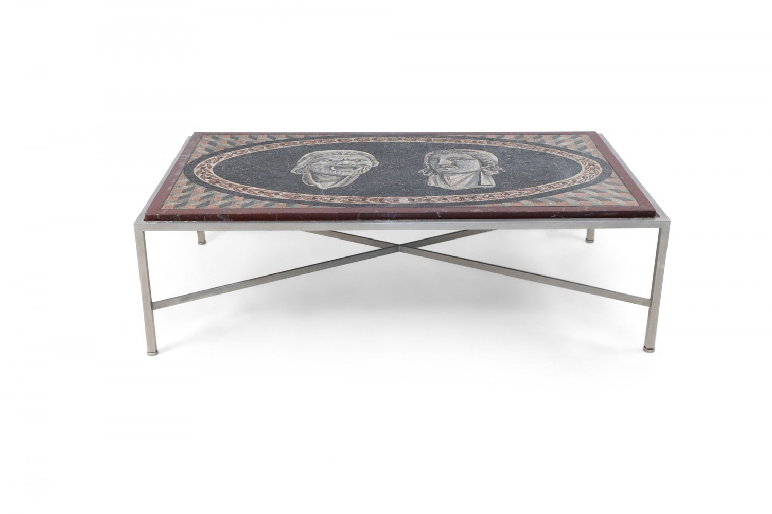 Italian Neo-Classic Mosaic Roman Face Design and Chrome Base Coffee Table