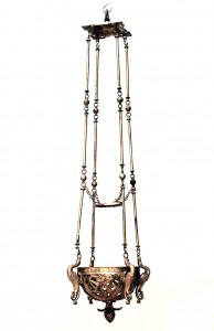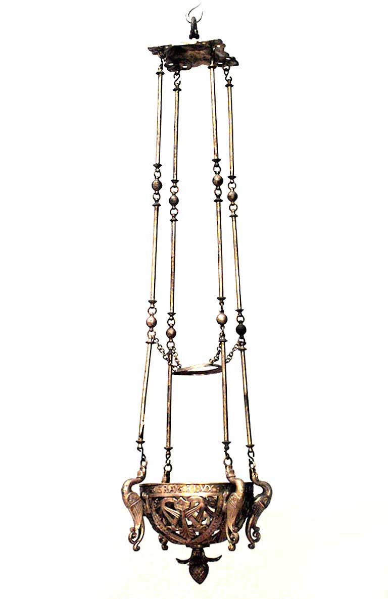 Italian Renaissance-style (19th Century) bronze dore filigree sanctuary fixture with 4 griffin supports.