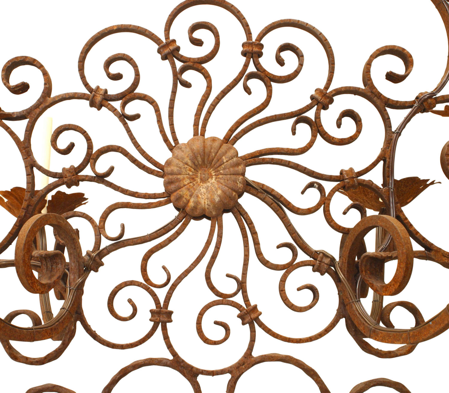 Italian Renaissance-style (19/20th Century) wrought iron chandelier with 6 scroll arm emanating from a filigree oval center.